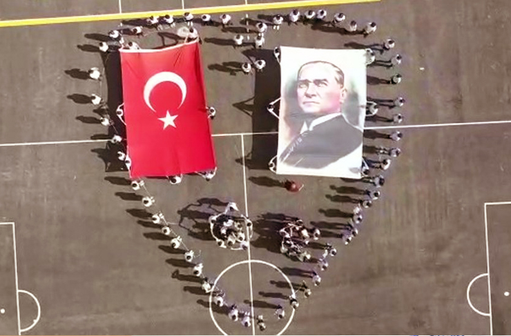 29 Ekim Cumhuriyet Bayramı etkinlikleri kapsamında İskenderun Namık Kemal Ortaokulu öğrencileri farklı bir çalışmaya imza attı. Öğrenciler, okulun bahçesinde Mustafa Kemal Atatürk resmi ve ay yıldızlı bayrak etrafında kalp şeklinde sıralandı. Öğrencilerin hazırlıkları koreografinin oluşumu drone ile görüntülendi.