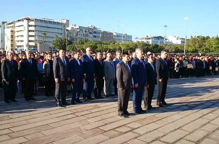 Anıt Alanında çelenk töreniyle başlayan ve daha sonra İSTE Konservatuarında devam eden törenlere İskenderun Kaymakamı Recep Soytürk, Belediye Başkanı Seyfi Dingil, Cumhuriyet Başsavcısı Ahmet Çelikkol, İskenderun 2’nci Ağır Ceza Mahkemesi ve Adalet Komisyonu Başkanı Salih Doğan, İskenderun Teknik Üniversitesi (İSTE) Rektör Yardımcısı Prof. Dr. Mevlüt Aktaş, İlçe Jandarma Komutanı Yüzbaşı Ferit Gül, İlçe Milli Eğitim Müdürü Mehmet Tuğrul ve şube müdürleri, okul idarecileri, öğretmenler, öğrenciler ile veliler katıldı.