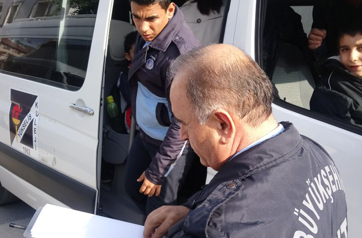 Servis araçlarının kontrollerini yaparak güvenliği kontrol altına alan HBB zabıta personelleri, öğrenci ve velilerin mutluluğuna vesile oldu.