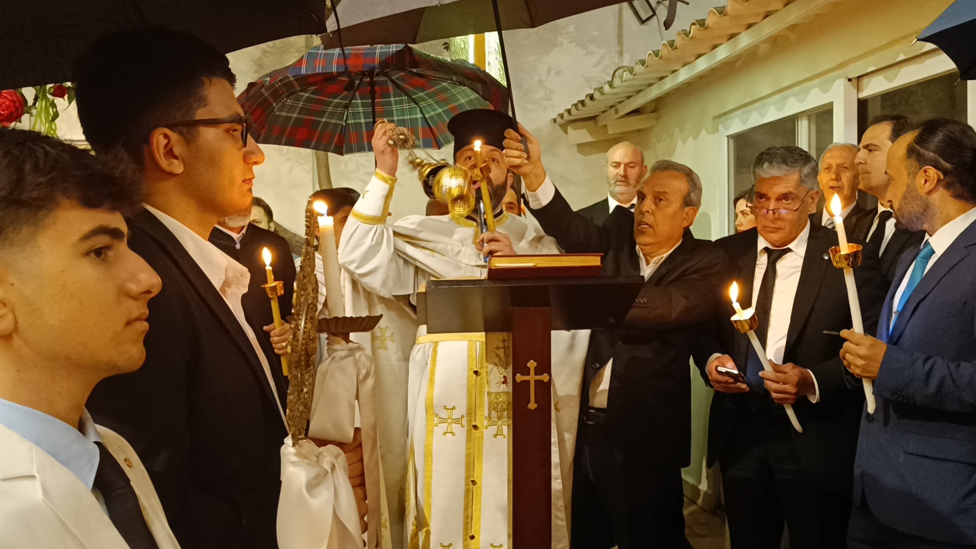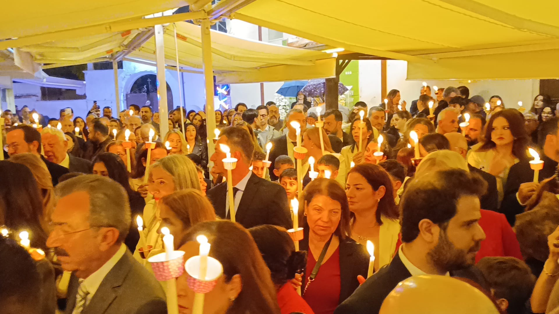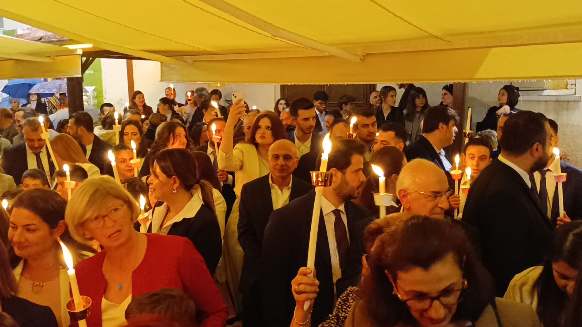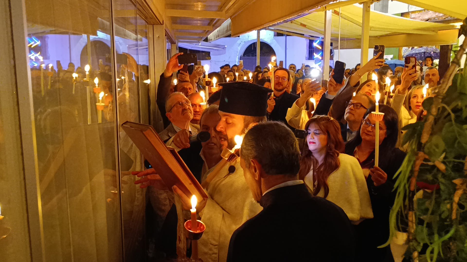 Kilisenin içerisinde başlayan ayin, daha sonra kilise avlusunda devam etti. Kilise Pederi Yusuf Nicholas Papasoğlu ve beraberindekiler, Kutsal Işığı simgeleyen ellerindeki mumlarla avluya çıkarken, İncil okuması da avluda yapıldı.