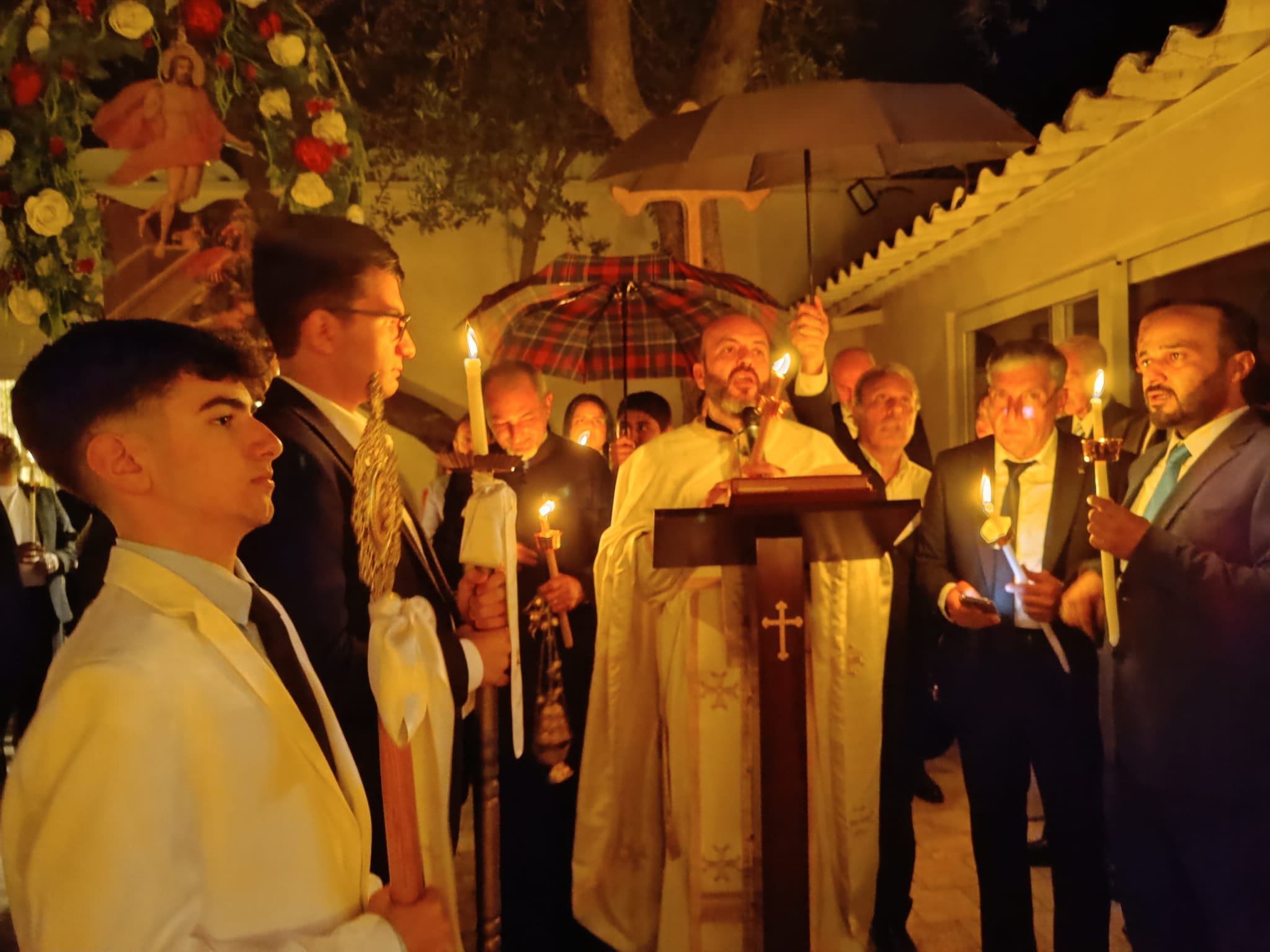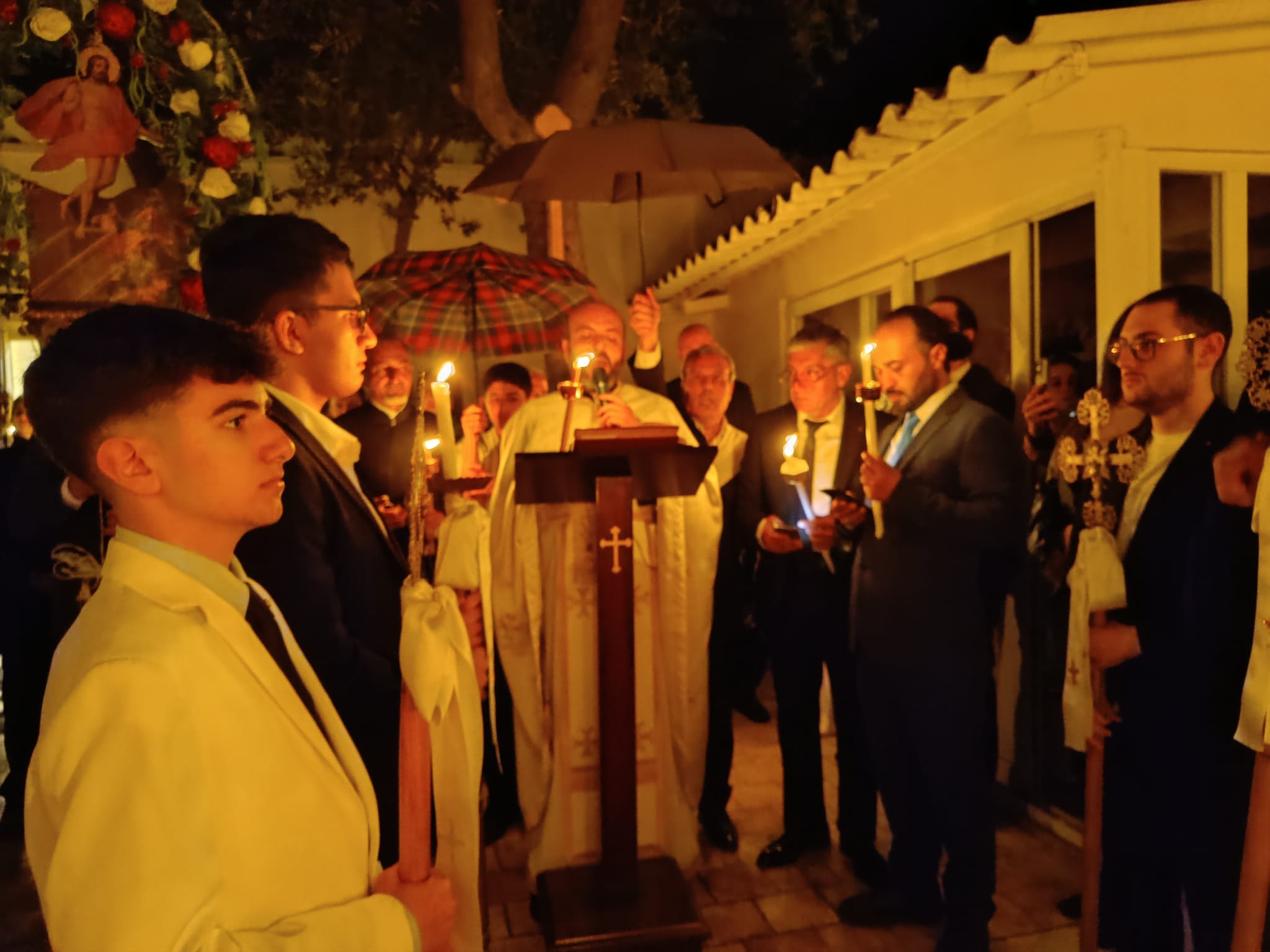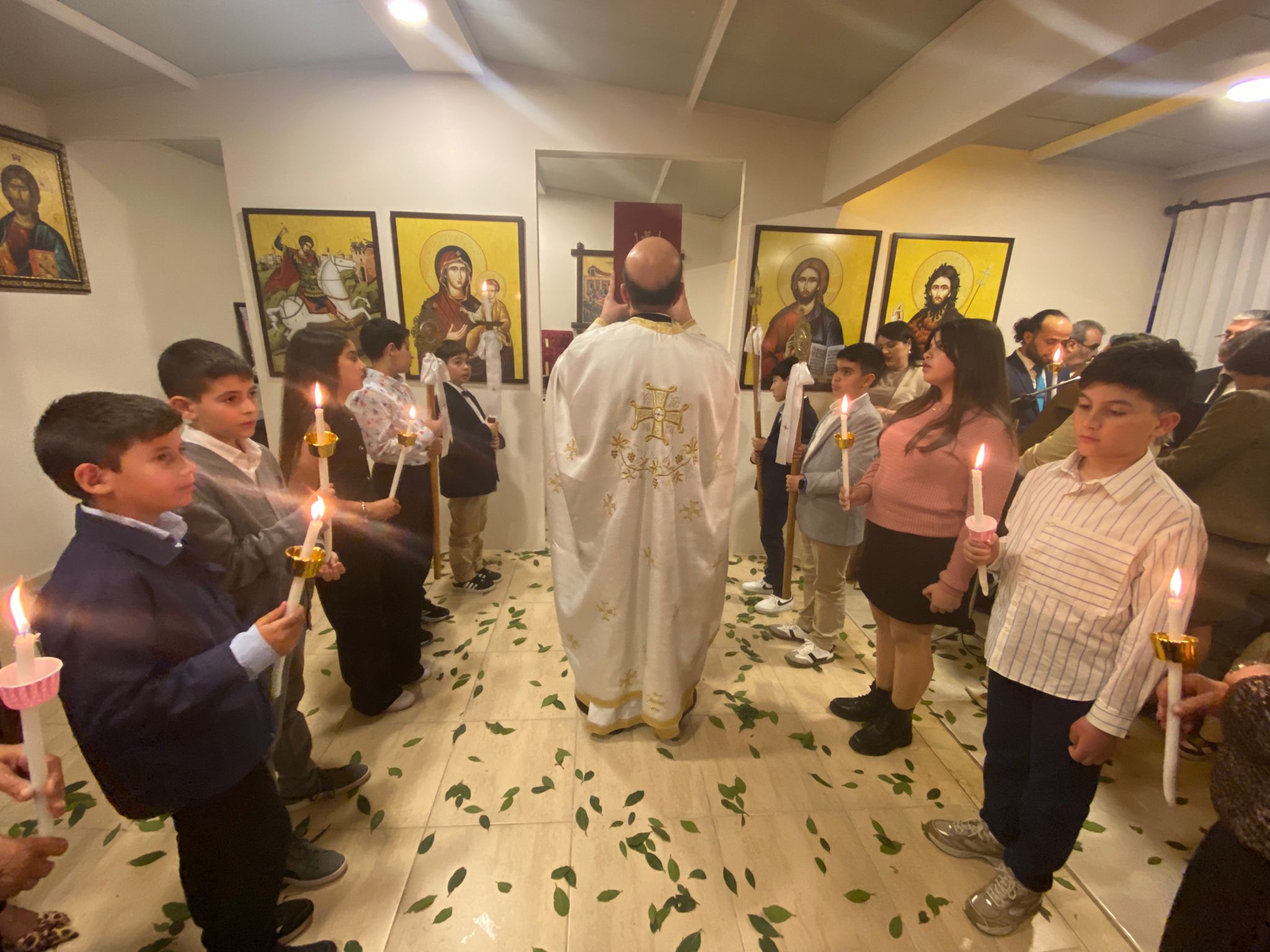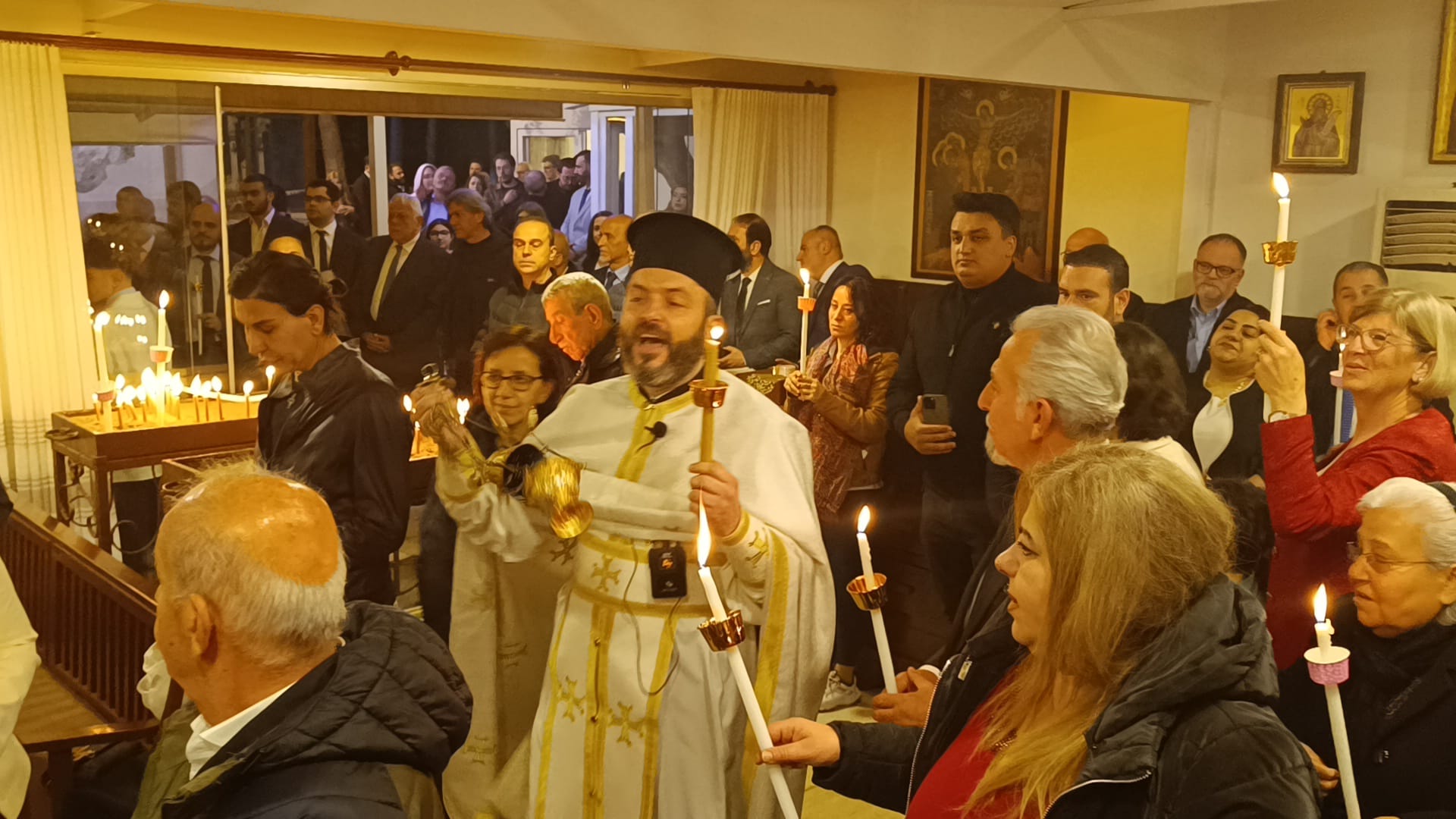 Kilisenin içerisinde başlayan ayin, daha sonra kilise avlusunda devam etti. Kilise Pederi Yusuf Nicholas Papasoğlu ve beraberindekiler, Kutsal Işığı simgeleyen ellerindeki mumlarla avluya çıkarken, İncil okuması da avluda yapıldı.