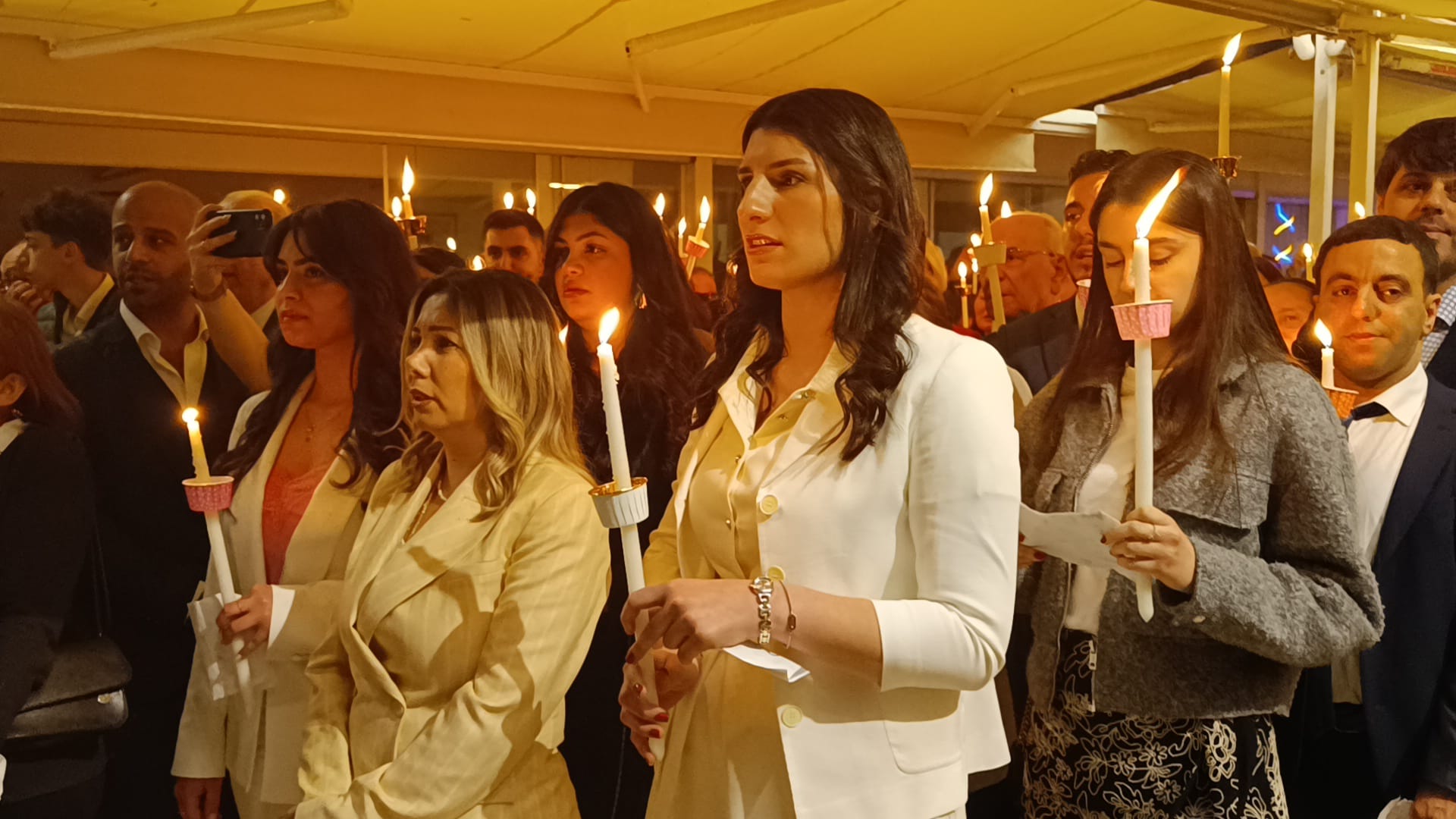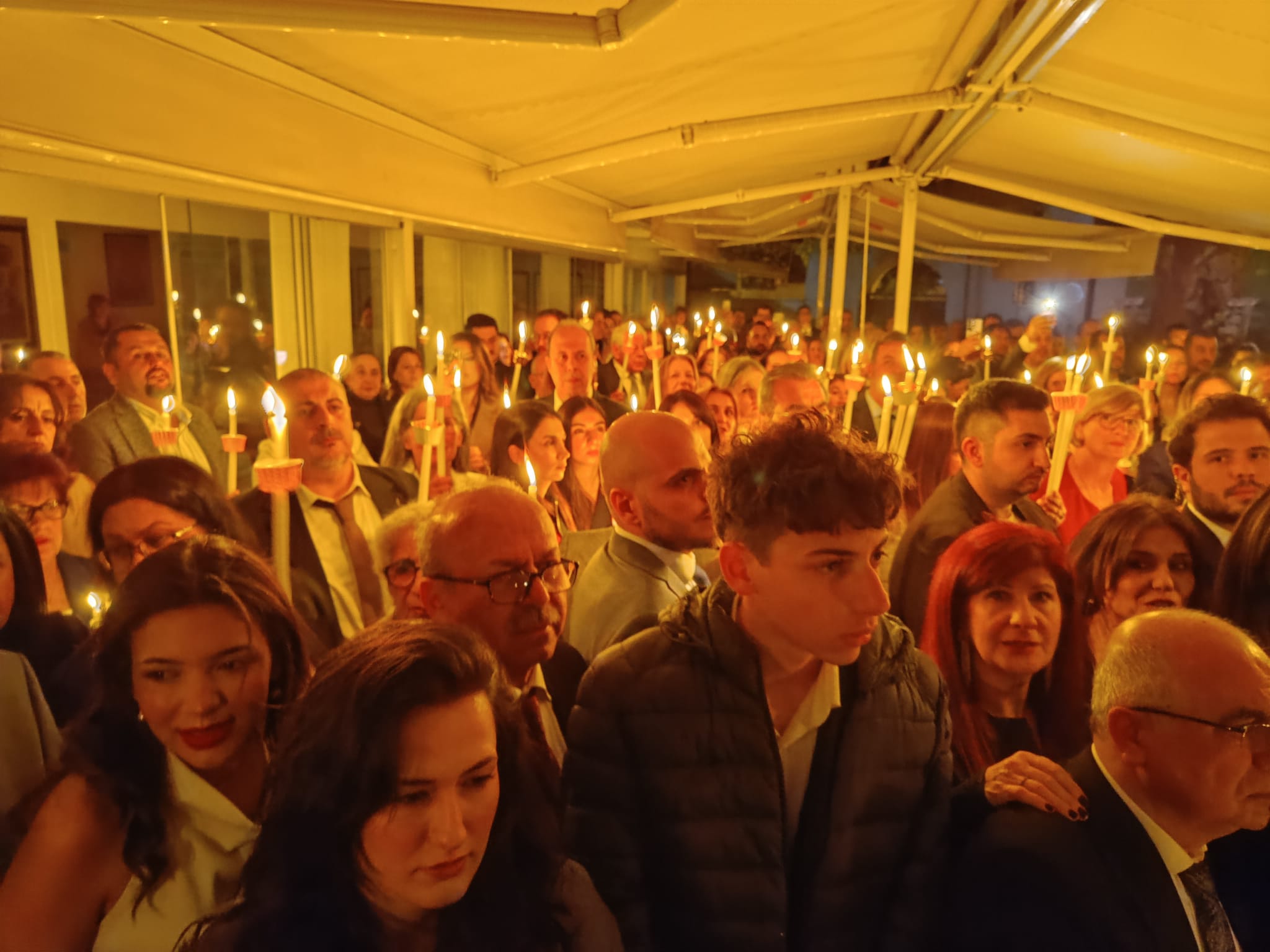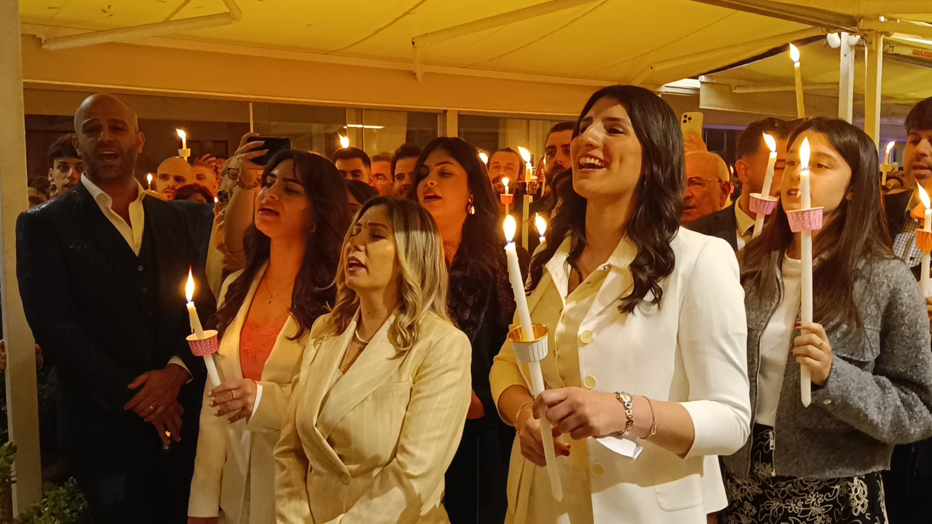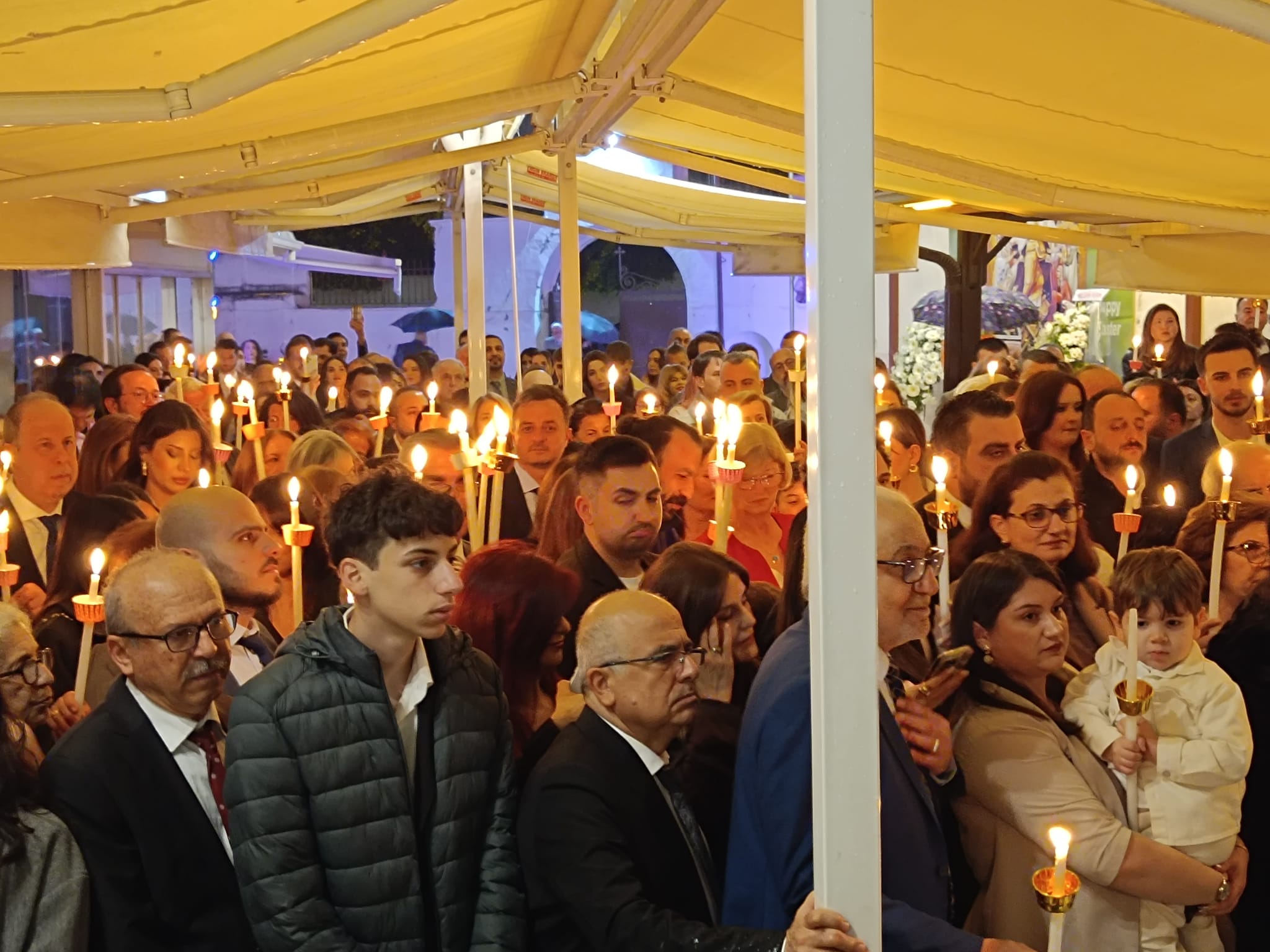 Kilisenin içerisinde başlayan ayin, daha sonra kilise avlusunda devam etti. Kilise Pederi Yusuf Nicholas Papasoğlu ve beraberindekiler, Kutsal Işığı simgeleyen ellerindeki mumlarla avluya çıkarken, İncil okuması da avluda yapıldı.