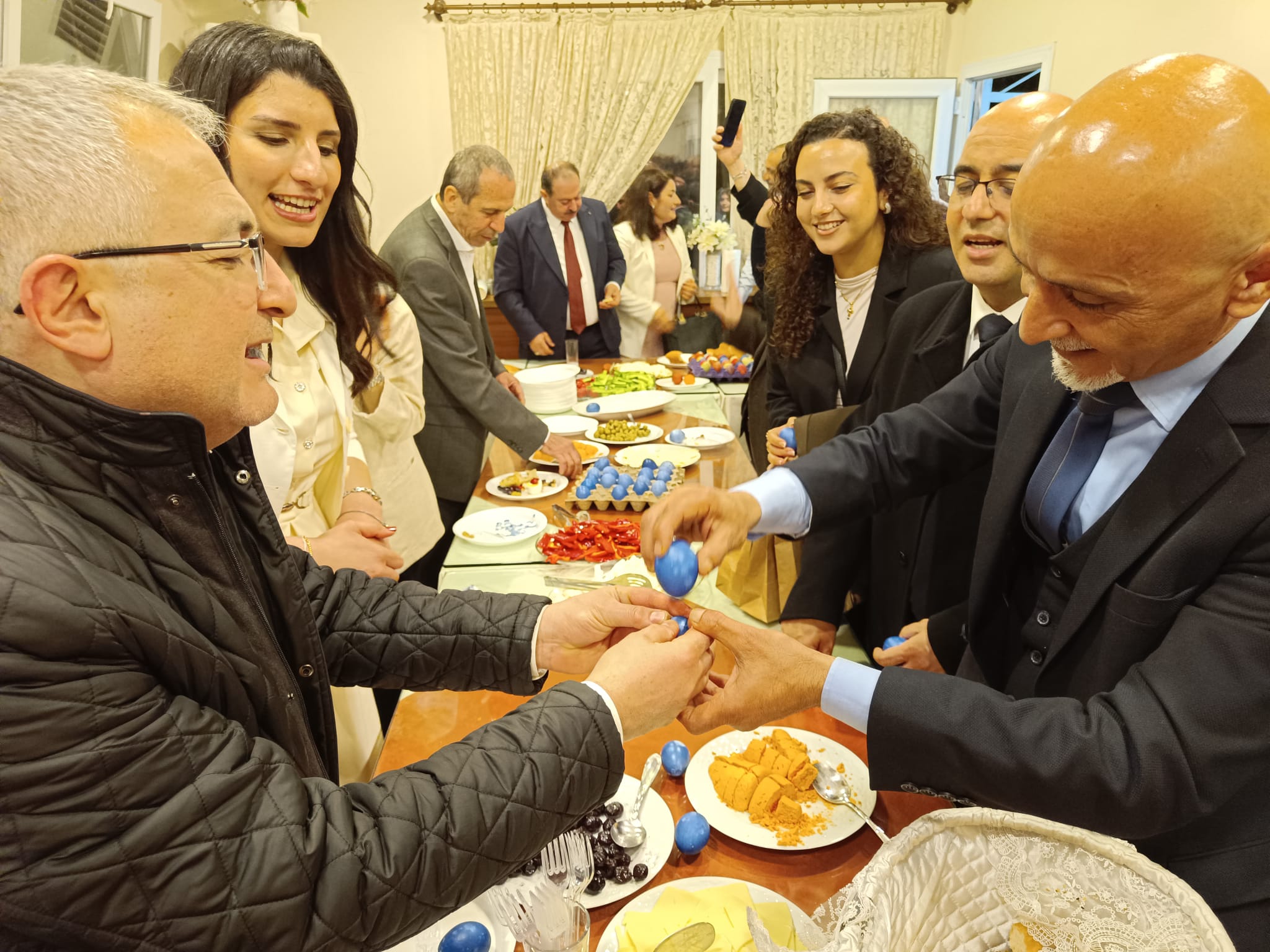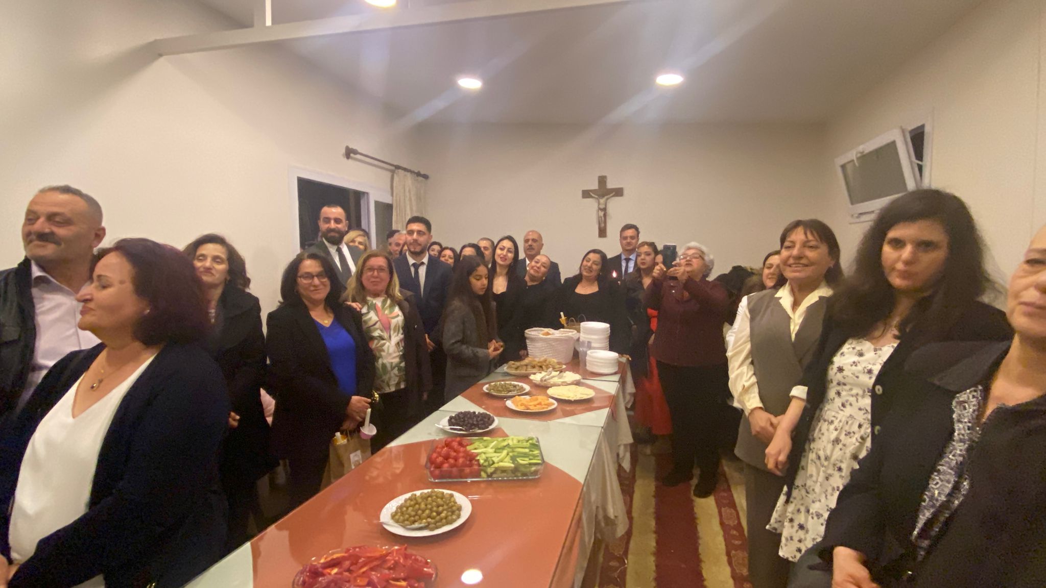 Ayin sonrasında yine kilise salonunda toplanan cemaat üyeleri, bayramın coşkusunu yumurta tokuşturarak sürdürdü. (Haber: İlyas Edip TERBİYELİ)