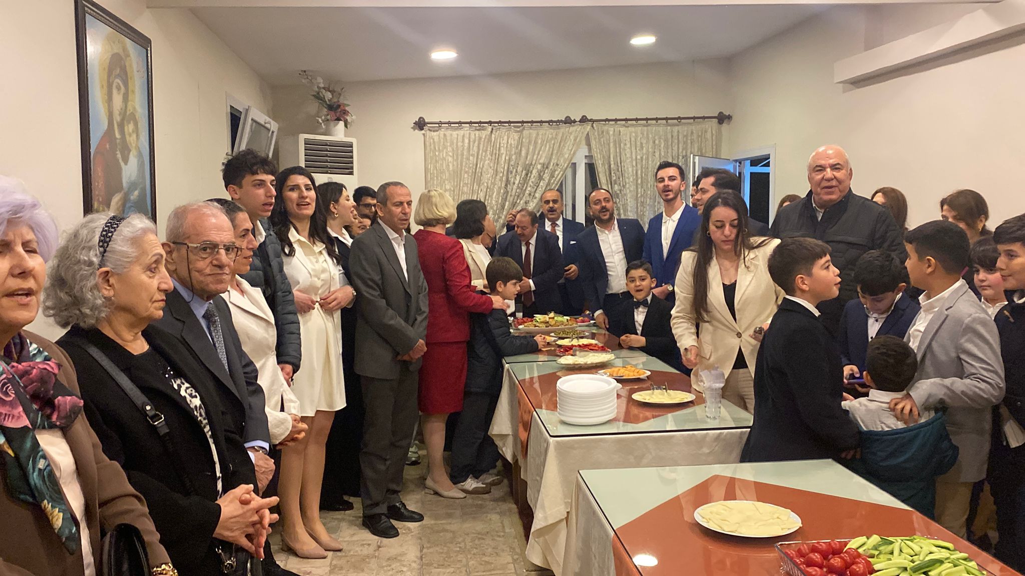 İncil Bölümünün okunmasının ardından Paskalya Bayramına özel Türkçe, Arapça ve Yunanca olarak seslendirilen ‘Mesih Kam-Hiristos Anesti-İsa Dirildi’ ilahisi Peder, kilise korosu ve tüm cemaat üyeleri tarafından defalarca coşkuyla söylendi.