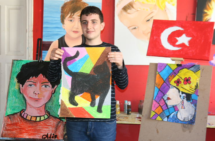 Birlikte gittiğimiz resim atölyesinde yaptığımız röportaj sırasında heyecanı gözlerinden okunan Ali Eren, ilk önce kendini tanıttı. 15 yaşında olduğunu, Nazım Kemal İlkokulunda ilköğrenimini aldığını anlatan Ali Eren, ilkokul öğretmeni Özcan Kara’yı çok sevdiğini ve onu tanıdığı ilk yıllardan bu güne kadar da onu sürekli görüştüğünü söyledi.