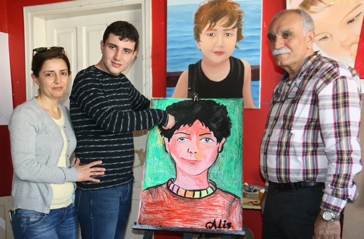 Birlikte gittiğimiz resim atölyesinde yaptığımız röportaj sırasında heyecanı gözlerinden okunan Ali Eren, ilk önce kendini tanıttı. 15 yaşında olduğunu, Nazım Kemal İlkokulunda ilköğrenimini aldığını anlatan Ali Eren, ilkokul öğretmeni Özcan Kara’yı çok sevdiğini ve onu tanıdığı ilk yıllardan bu güne kadar da onu sürekli görüştüğünü söyledi.