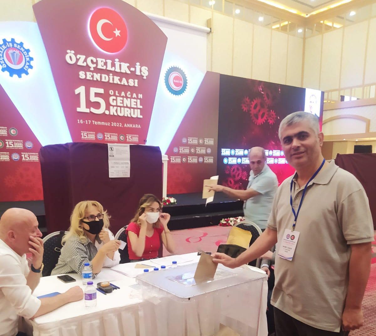 Öz Çelik-İş Sendikası 15. Olağan Genel Kurulu, geçtiğimiz hafta sonu Ankara Green Park Otel’de gerçekleştirildi. Genel Kurul sonunda mevcut başkan Yunus Değirmenci delegelerin oyları ile bir kez daha Genel Başkan seçildi.