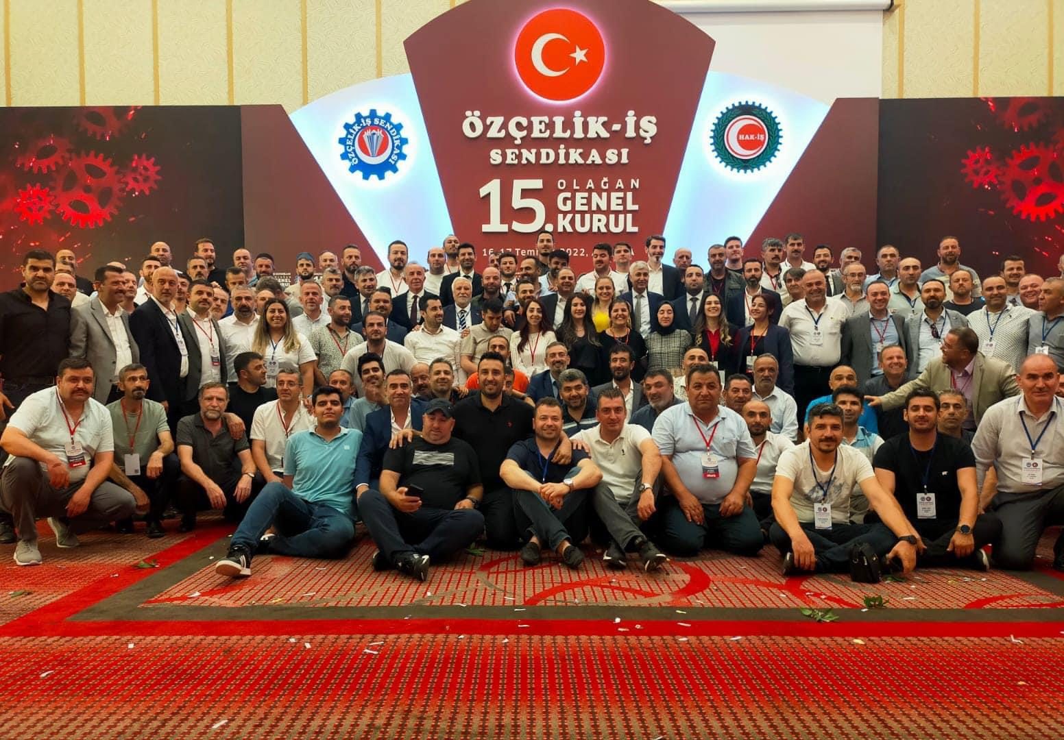 Öz Çelik-İş Sendikası 15. Olağan Genel Kurulu, geçtiğimiz hafta sonu Ankara Green Park Otel’de gerçekleştirildi. Genel Kurul sonunda mevcut başkan Yunus Değirmenci delegelerin oyları ile bir kez daha Genel Başkan seçildi.