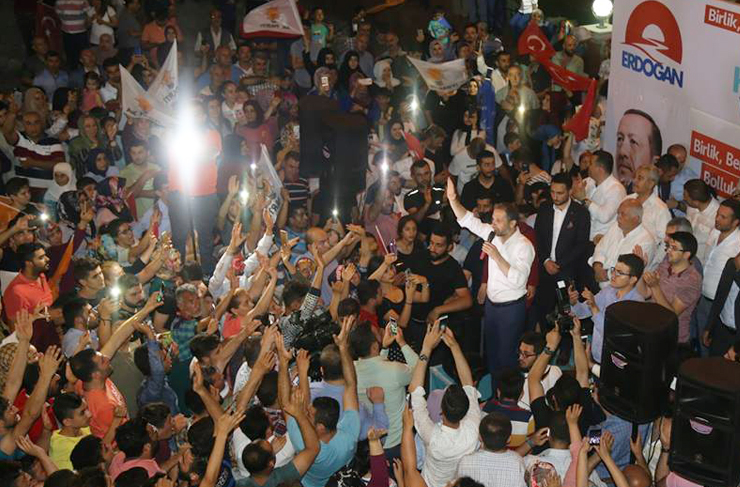 Ak Parti’li ve MHP’li binlerce vatandaş İskenderun Atatürk Bulvarı üzerinde toplanarak, konvoylar oluşturdu. Vatandaşlar ellerinde Türk bayrakları ve Ak Parti, MHP flamalarıyla tezahüratlarda bulundular. ‘Recep Tayyip Erdoğan2 sloganları atılırken, araçlardaki vatandaşlar da kornalarıyla eşlik etti. Türk bayrakları açan vatandaşlar meşaleler yaktı, sevinç gösterilerinde bulundu.