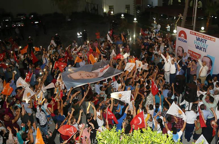 Ak Parti’li ve MHP’li binlerce vatandaş İskenderun Atatürk Bulvarı üzerinde toplanarak, konvoylar oluşturdu. Vatandaşlar ellerinde Türk bayrakları ve Ak Parti, MHP flamalarıyla tezahüratlarda bulundular. ‘Recep Tayyip Erdoğan2 sloganları atılırken, araçlardaki vatandaşlar da kornalarıyla eşlik etti. Türk bayrakları açan vatandaşlar meşaleler yaktı, sevinç gösterilerinde bulundu.