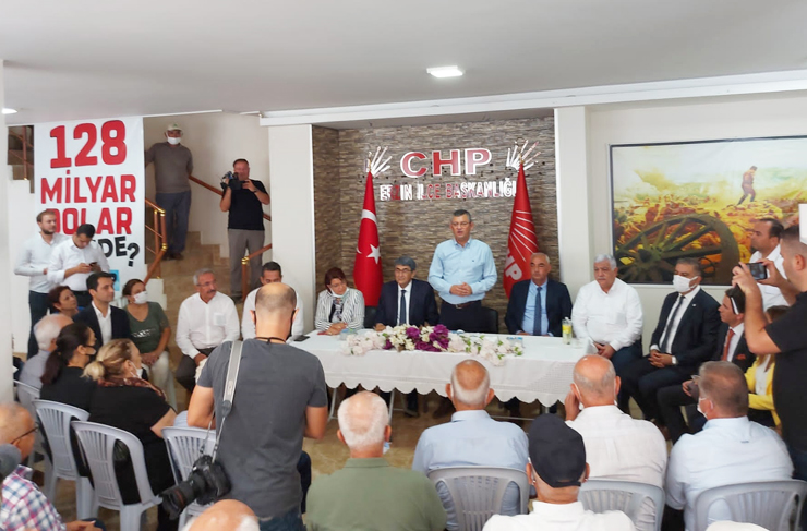 CHP’li Özgür Özel, daha sonra beraberindekilerle birlikte CHP Erzin İlçe Başkanı Yalçın Elmasoğlu, ilçe örgütü ve partililerle bir araya gelirken, gündem üzerine sohbet etti.