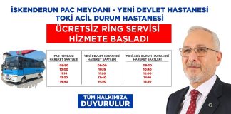 İskenderun Belediyesi, vatandaşların yeni yapılan Acil Durum Hastanesine rahat ve güvenli ulaşımı için iki farklı noktadan ücretsiz ring servisi başlattı.