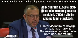 30-40 yılını devlete, millete hizmetle geçirmiş vatandaşlarımızın hayatlarının son döneminde adeta ölümle burun buruna bırakıldığını ifade eden Saadet Partisi Hatay Milletvekili Doç. Dr. Necmettin...