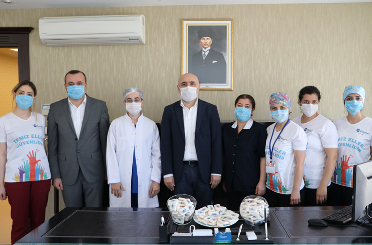 ‘5 Mayıs Dünya El Hijyeni Günü’ dolayısıyla Özel Palmiye Hastanesi Enfeksiyon Kontrol Komitesi; doğru el yıkama teknikleri ile ilgili bilgilendirme yaparak, hasta ve hasta yakınlarına sabun dağıttı.