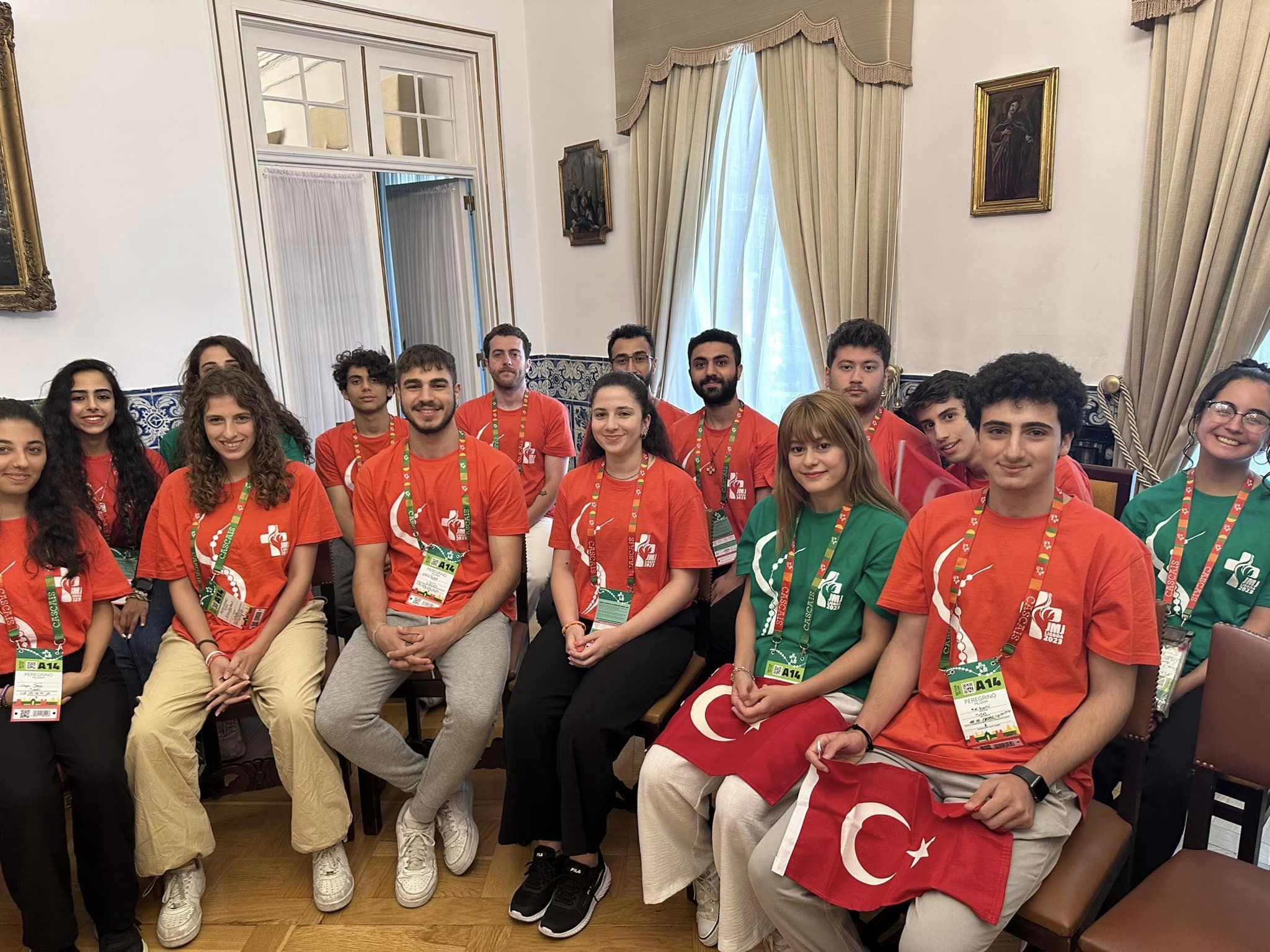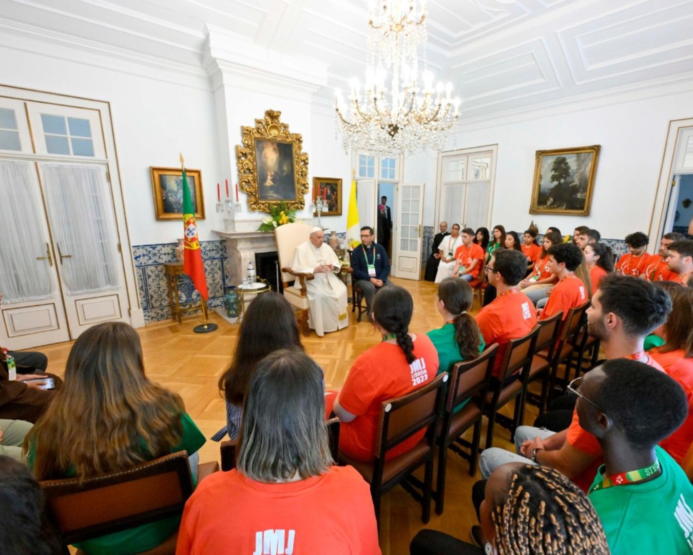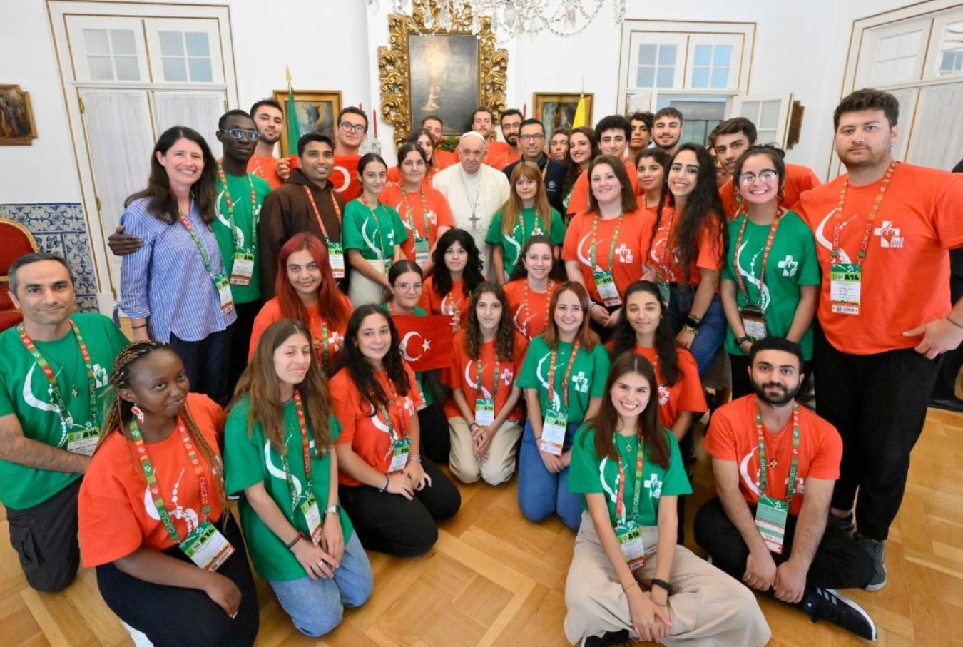 Dünya Gençlik Günü için Lizbon’a giden Papa Francis, Lizbon’daki Papalık Salonunda, Türkiye’den gelen ve depremden sonra aldıkları yardım için kendisine teşekkür eden çeşitli şehir ve mezheplerinden Türk Gençlerini kabul etti.