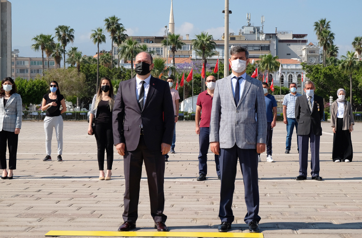 19 Mayıs Atatürk’ü Anma Gençlik ve Spor Bayramı’nın 102’nci yıldönümü, Türkiye’nin dört bir yanında olduğu gibi İskenderun’da da koronavirüs pandemisine yönelik tedbirler nedeniyle sosyal mesafe kuralları çerçevesinde kutlandı.