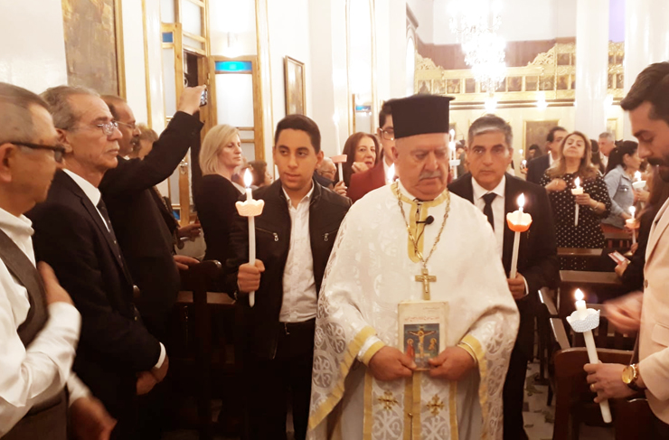 Kiliseye gelen cemaat üyelerine kilise girişinde renkli yumurta ve külçe olarak da adlandırılan ‘Antakya Kakesi’ dağıtıldı. Kilise içerisinde başlayan ayin, daha sonra kilise avlusunda devam etti. Ellerinde mumlarla Peder Dimitri Yıldırım’ın arkasında avluya çıkan cemaat üyeleri, burada devam eden ayinde ilahiler söyleyerek bayram coşkusunu yaşadı. Paskalya Bayramına özel Arapça ve Yunanca olarak seslendirilen ‘Mesih Kam-Hiristos Anesti’ (İsa Dirildi) ilahisi kilise korosu ve cemaat üyeleri tarafından defalarca coşkuyla söylendi.