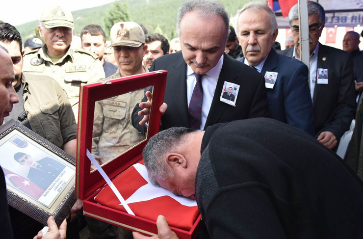 Daha sonra Payas Mezarlık Camisi’nde düzenlenen cenaze törenine, Bilim, Sanayi ve Teknoloji Bakanı Dr. Faruk Özlü, Hatay Valisi Erdal Ata, Hatay Milletvekilleri Orhan Karasayar, Adem Yeşildal, Mehmet Necmettin Ahrazoğlu, Hacı Bayram Türkoğlu, İskenderun Teknik Üniversitesi Rektörü Prof. Dr. Türkay Dereli, Adana Jandarma Bölge Komutanı Tümgeneral Hacı İlbaş, 39. Mekanize Piyade Tugay Komutanı Tuğgeneral Tevfik Erkan Olgay, İl Jandarma Komutanı J. Alb. Uğur Ertekin, İl Emniyet Müdürü Kamil Karabörk, ilçe kaymakamları, ilçe belediye başkanları, siyasi parti il başkanları, şehidimizin ailesi, yakınları ile hemşerileri katıldı.