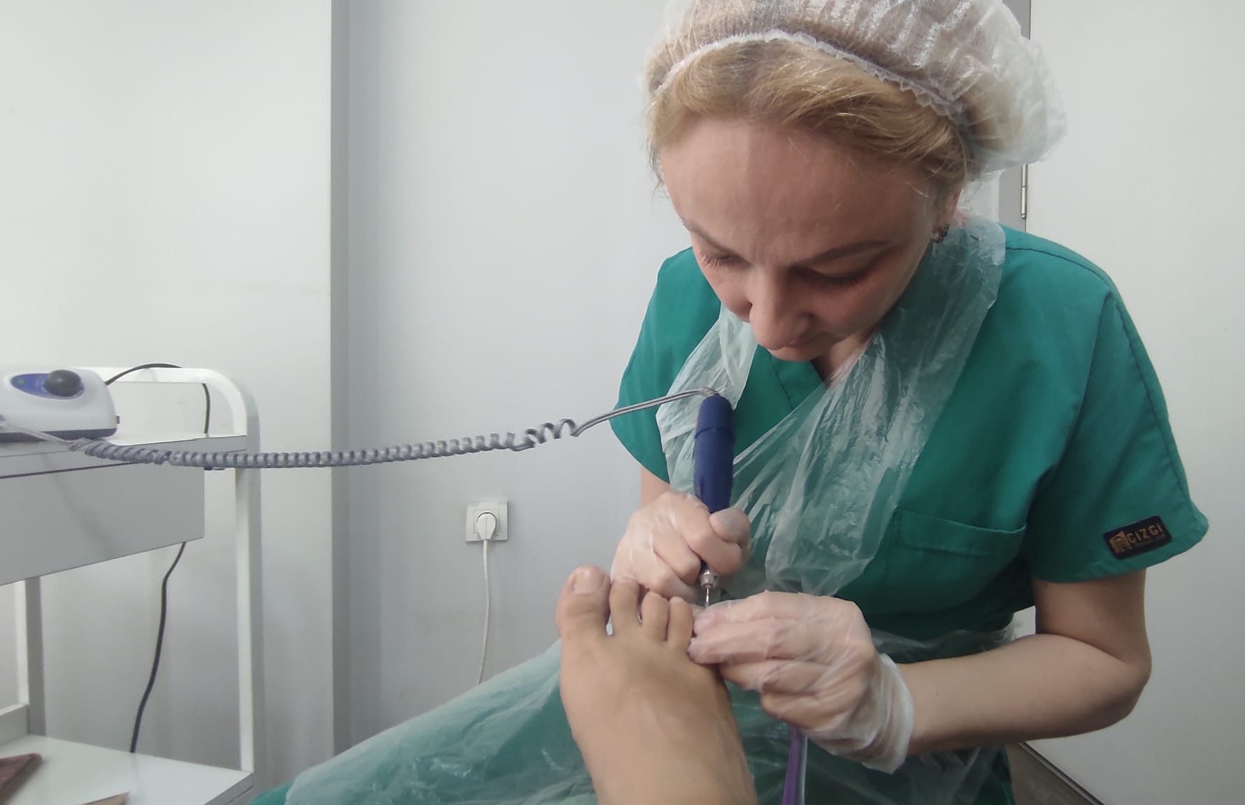 İskenderun’da ilk ve tek olarak ‘diskli pedikür’ yaptığını kaydeden Podolog Anna Cengiz; “Kuru medikal pedikür yapıyorum. Pedikür için gelenlerin problemine bakıyorum, önce anlatıyorum. Sorun nedir, nasıl çözülür, nelere dikkat edilmelidir hepsini ayrıntılarıyla anlatıyorum. Batık tırnak varsa, ameliyatsız çözüm buluyoruz. Sonrasında neler yapılması gerektiğini anlatıyorum, kişi bunlara uyarsa bir daha batık sorunu yaşamıyor. Topuk kalınlaşması, çatlaklarına da çözüm buluyoruz.