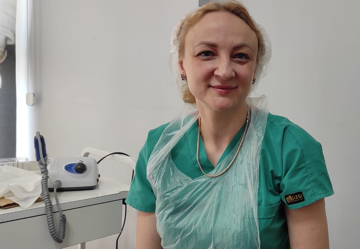 İskenderun’da ilk ve tek olarak ‘diskli pedikür’ yaptığını kaydeden Podolog Anna Cengiz; “Kuru medikal pedikür yapıyorum. Pedikür için gelenlerin problemine bakıyorum, önce anlatıyorum. Sorun nedir, nasıl çözülür, nelere dikkat edilmelidir hepsini ayrıntılarıyla anlatıyorum. Batık tırnak varsa, ameliyatsız çözüm buluyoruz. Sonrasında neler yapılması gerektiğini anlatıyorum, kişi bunlara uyarsa bir daha batık sorunu yaşamıyor. Topuk kalınlaşması, çatlaklarına da çözüm buluyoruz.