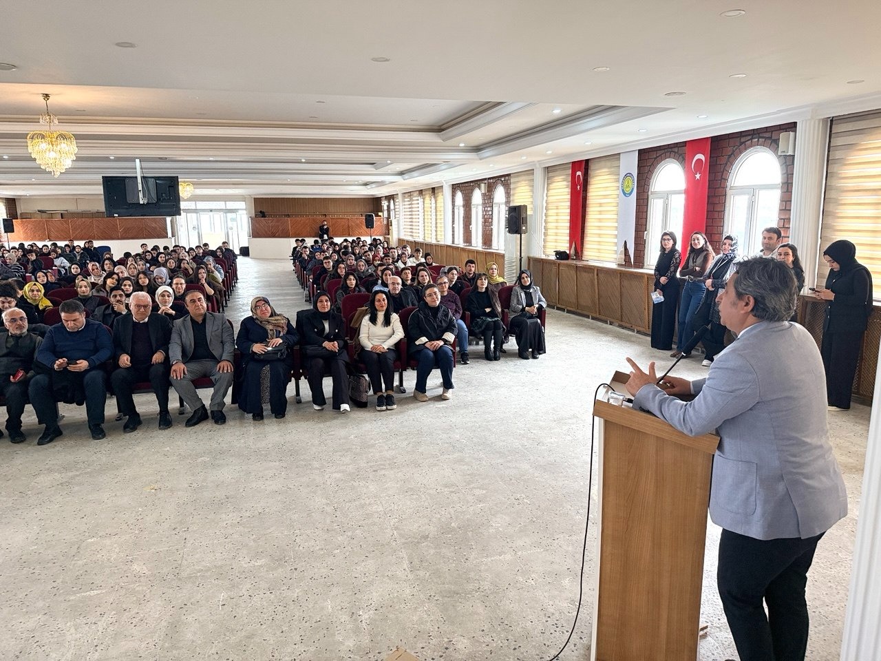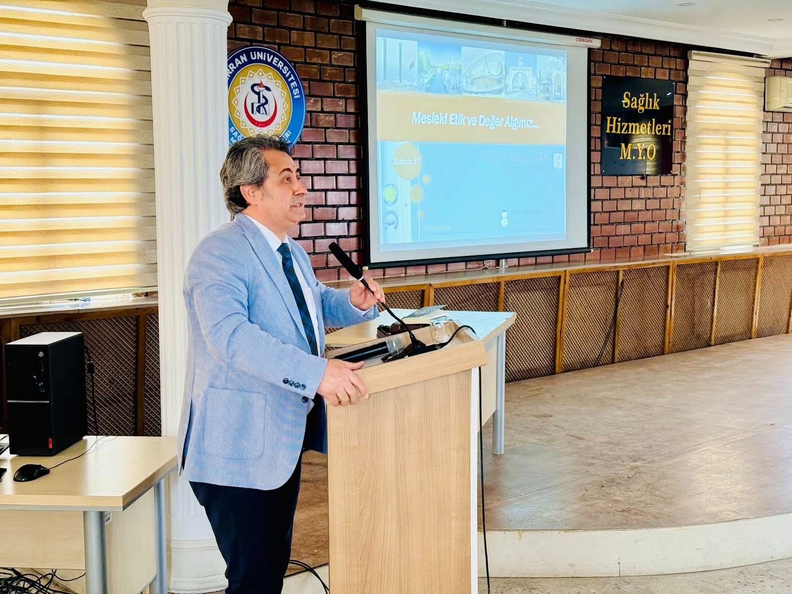 Profesör Yılmaz’ın Hatay’dan sonra ikinci durağı daha önce 18 yıl hizmet ettiği Şanlıurfa oldu. Harran Üniversitesi Sağlık Hizmetleri Meslek Yüksek Okulunun düzenlediği “Mesleki Etik ve Değer Algımız” konferansın akademisyenler ve üniversite öğrencileriyle buluştu. Büyük katılımın gerçekleştiği konferansta Profesör Yılmaz, yıllar sonra tekrar Şanlıurfa’ya gelip, görev yaptığı üniversitede gençlerle, eski dönem mezunu öğrencileri ve mesai arkadaşlarıyla buluşmaktan büyük mutluluk duyduğunu, böyle bir organizasyonun kendisini onore ettiğini, özlem gidermekten büyük bir mutluluk duyduğunu söyledi.