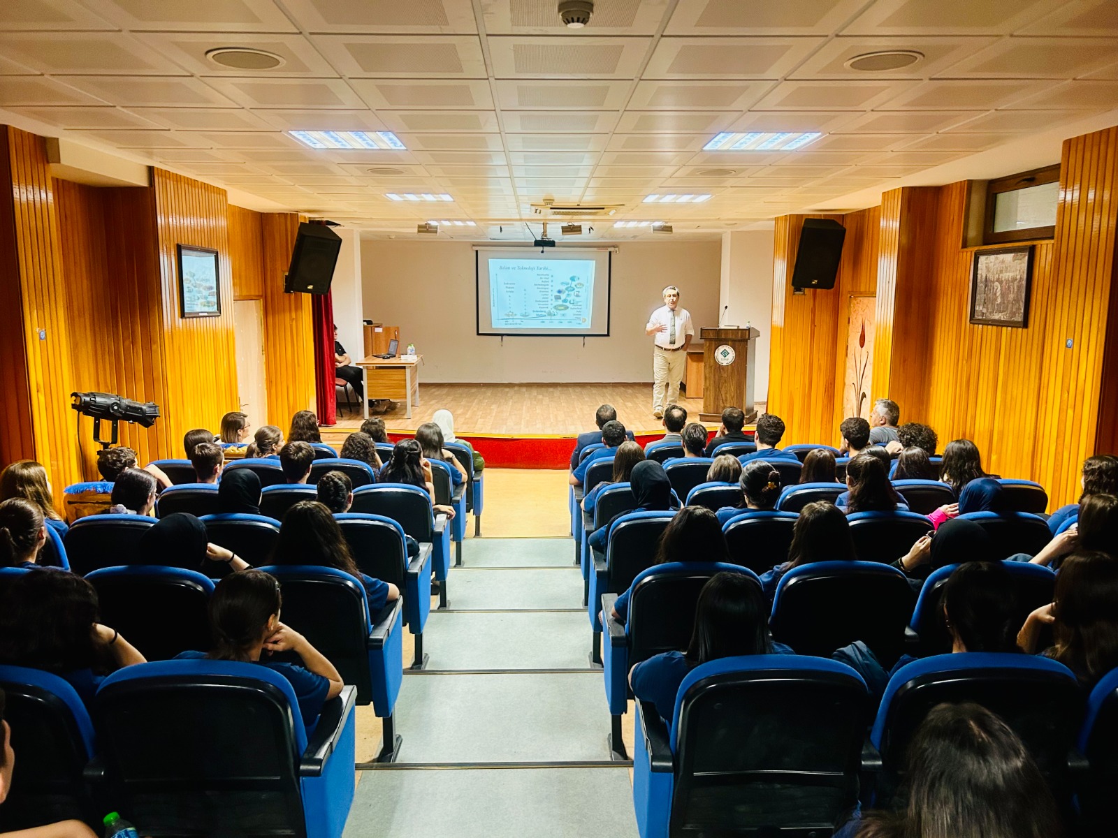 Hatay Payas Nursan Anadolu Lisesi Kariyer Günlerinin son konuğu Aksaray Üniversitesi Eğitim Fakültesi Öğretim Üyesi Prof. Dr. Süleyman Yılmaz oldu. Geçmişten günümüze teknolojinin hayatımızı nasıl etkilediğinin konuşulduğu konferansta Profesör Yılmaz, ilgi çeken konulardan bahsetti.