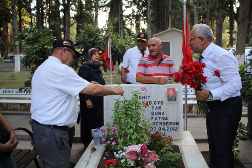 Karaağaç Asri Mezarlıktaki şehitlik ziyaretine, İskenderun Kaymakamı İskender Yönden, Ak Parti Hatay Milletvekili Abdulkadir Özel, Garnizon Komutanı Tuğgeneral Alparslan Kılınç, İskenderun Belediye Başkanı Fatih Tosyalı, İskenderun Deniz Üs Komutanı Tuğamiral Ercan Kireçtepe, kamu kurum ve kuruluşlarının daire amirleri, siyasi parti ve sivil toplum kuruluşu temsilcileri, askeri erkan, şehit aileleri ve gaziler ile çok sayıda vatandaş katıldı.