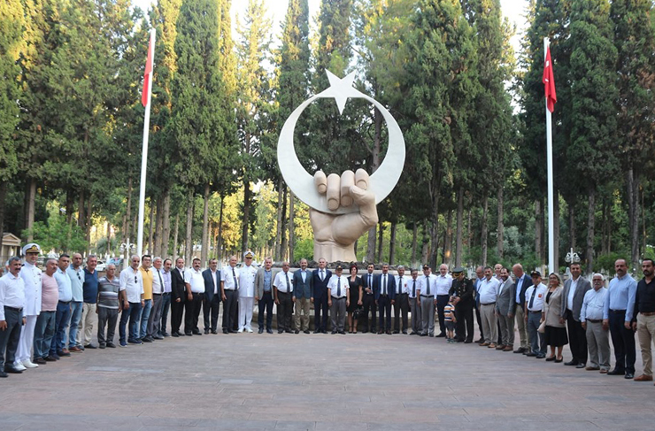 Karaağaç Asri Mezarlıktaki şehitlik ziyaretine, İskenderun Kaymakamı İskender Yönden, Ak Parti Hatay Milletvekili Abdulkadir Özel, Garnizon Komutanı Tuğgeneral Alparslan Kılınç, İskenderun Belediye Başkanı Fatih Tosyalı, İskenderun Deniz Üs Komutanı Tuğamiral Ercan Kireçtepe, kamu kurum ve kuruluşlarının daire amirleri, siyasi parti ve sivil toplum kuruluşu temsilcileri, askeri erkan, şehit aileleri ve gaziler ile çok sayıda vatandaş katıldı.