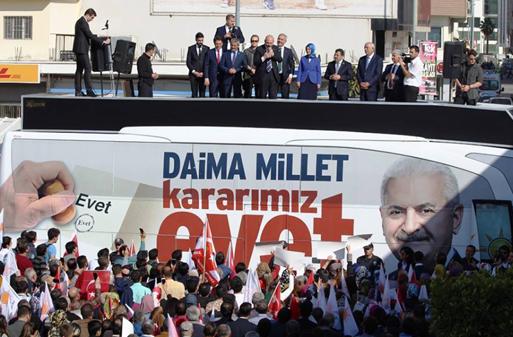 Çok önemli, tarihi kararın arifesindeyiz. Sadece 18 maddelik anayasa referandumuyla ilgili verebileceğimiz bir karar değil. Vereceğimiz karar, medeniyetimiz adına, bu milletin çektiklerinin bir daha çekilmemesi üzerine vereceğimiz, bizi beğenmeyen, siz kimsiniz diyenlere karşı bir milletiz diyeceğimiz bir karardır. Vereceğimiz karar, yıllardan beri bize azap çektiren, demokrasiyi ‘mış’ gibi yaşamamızı istemeye çalışan, bu ülkede her adım attığımızda, her ayağa kalkmaya çalıştığımızda, ufka bakmaya çalıştığımızda bizi engellemeye çalışanlara karşı Anadolu’nun güçlü sesini ileteceğimiz karardır” dedi.