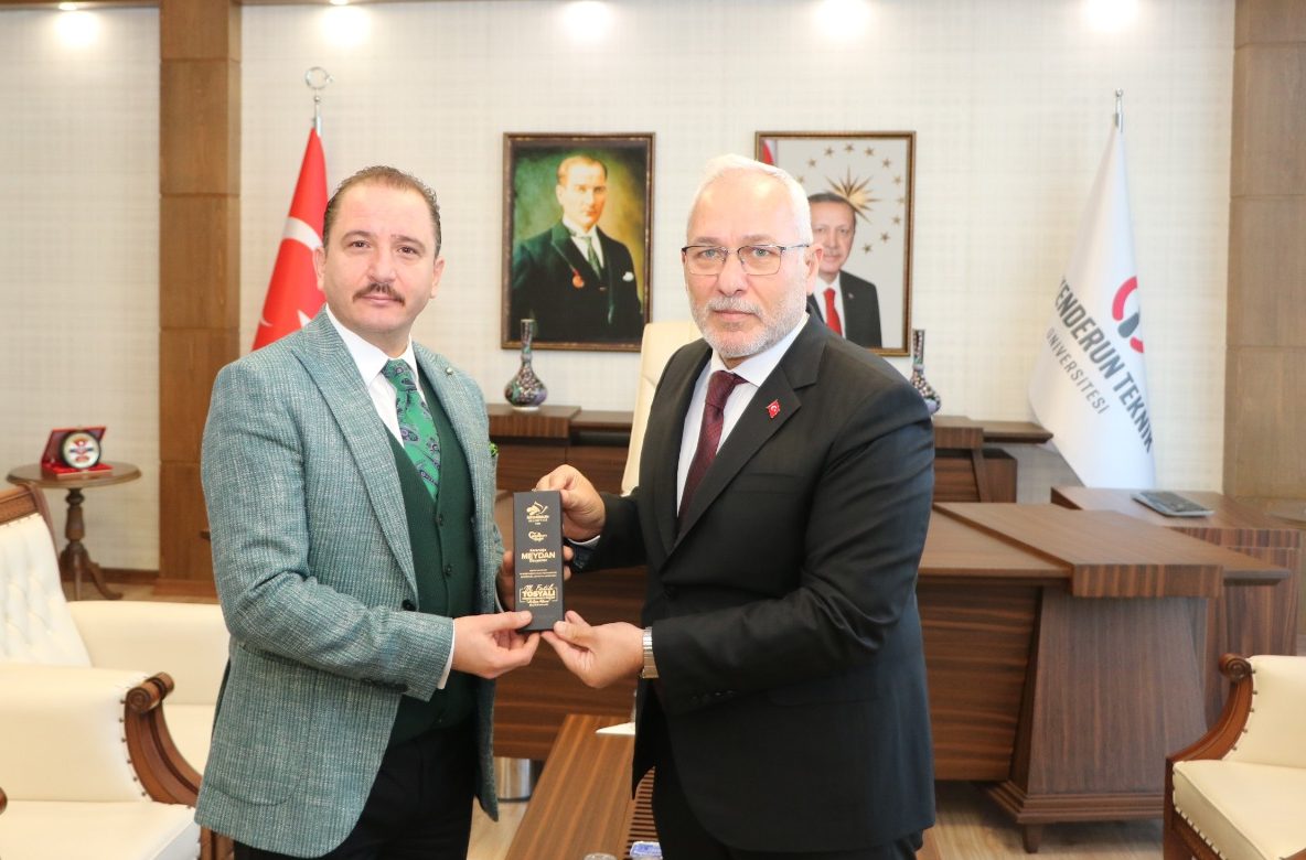 İskenderun Teknik Üniversitesi (İSTE) Rektörü Prof. Dr. Tolga Depci, İskenderun Belediye Başkanı M. Fatih Tosyalı’yı ağırladı. 9 Aralık Cuma günü Rektör Depci’nin konuğu olan İskenderun Belediye Başkanı M. Fatih Tosyalı İSTE’de görev yapan tüm öğretim elemanlarına sunulmak üzere hediye getirdi.