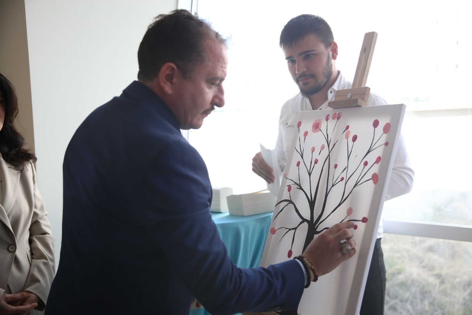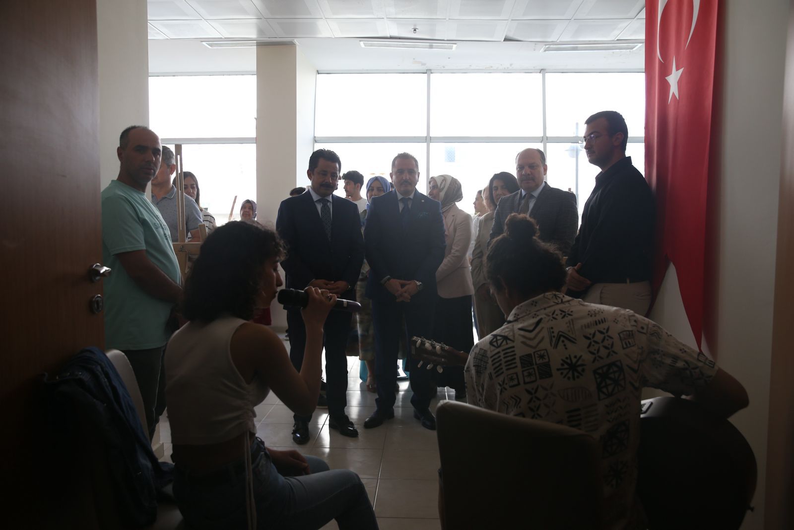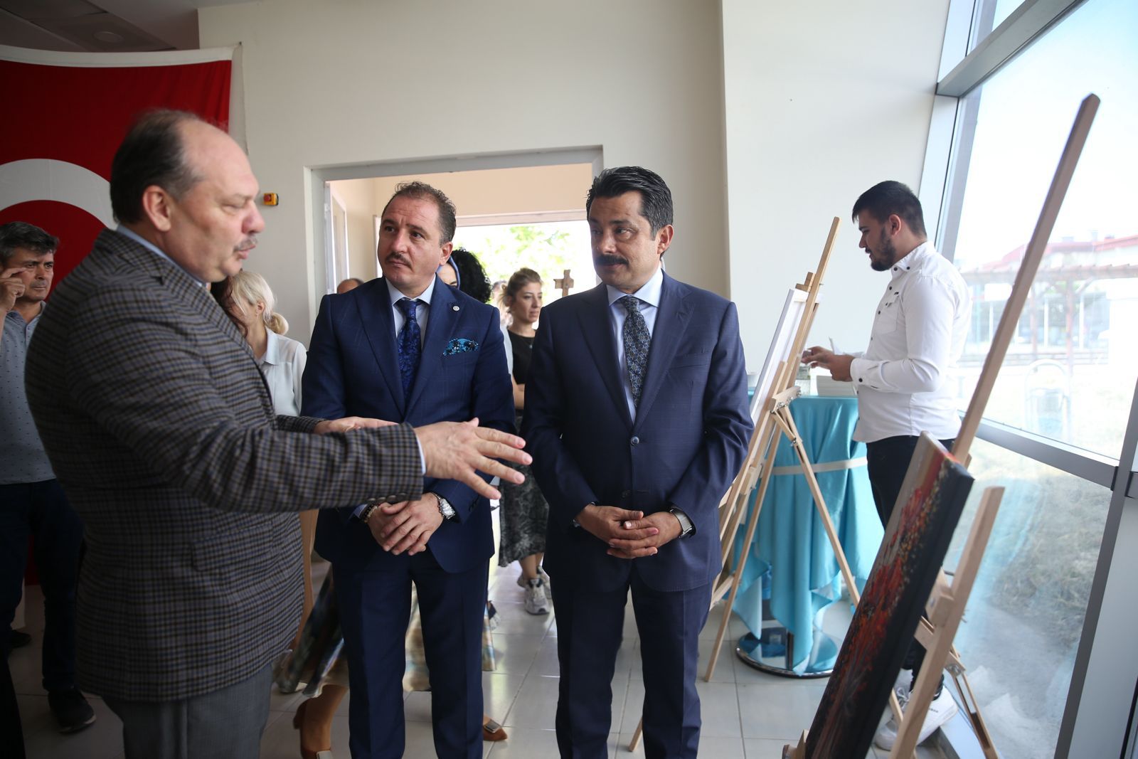 20 öğrencinin yağlı boya tekniğiyle yaptığı 30 resmin yer aldığı sergiyi gezip eserleri inceleyen Kaymakam Murat Sefa Demiryürek, Rektör Depci ve Gençlik ve Spor İlçe Müdürü Gündel öğrencileri tebrik ederek çalışmalarında başarılar diledi. Öğrencilerin müzik dinletisinin eşlik ettiği sergi açılışı kokteyl ve hatıra fotoğrafı çekimi ile sona erdi.
