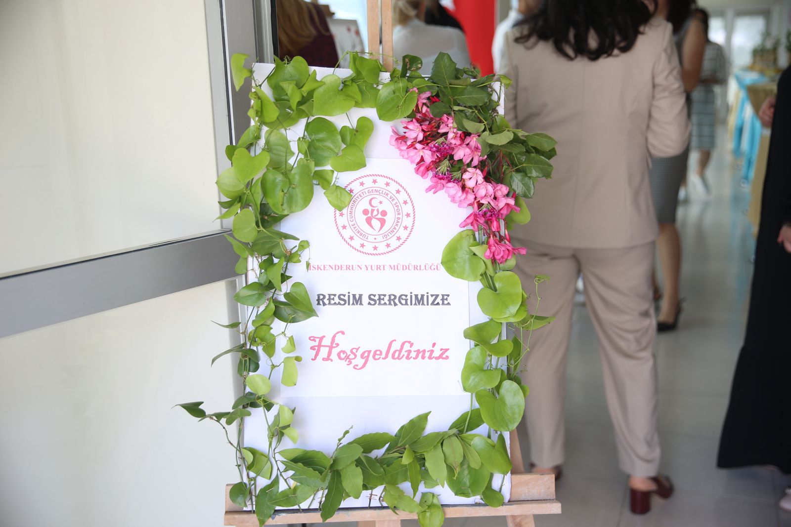 Üniversite öğrencilerinin eserlerinin yer aldığı serginin açılış kurdelesini Perşembe günü gerçekleştirilen törende İskenderun Kaymakamı Murat Sefa Demiryürek, İSTE Rektörü Prof. Dr. Tolga Depci, İskenderun İlçe Gençlik ve Spor Müdürü Ferit Ali Gündel ve yurt müdürü birlikte kesti.