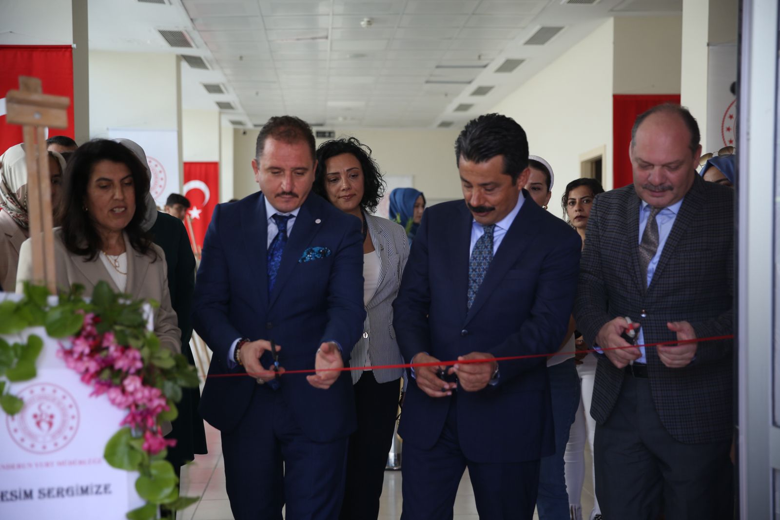 20 öğrencinin yağlı boya tekniğiyle yaptığı 30 resmin yer aldığı sergiyi gezip eserleri inceleyen Kaymakam Murat Sefa Demiryürek, Rektör Depci ve Gençlik ve Spor İlçe Müdürü Gündel öğrencileri tebrik ederek çalışmalarında başarılar diledi. Öğrencilerin müzik dinletisinin eşlik ettiği sergi açılışı kokteyl ve hatıra fotoğrafı çekimi ile sona erdi.