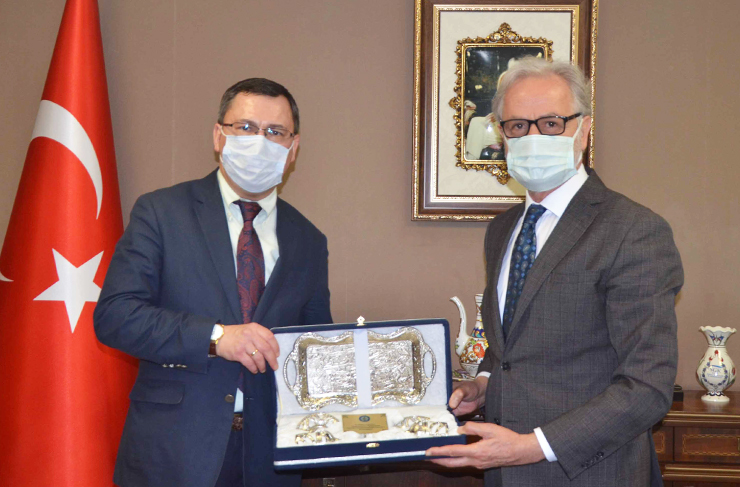 Rusya Federasyonu Türkiye Ticaret Mümessili Aydar Gashigullin ve beraberindeki heyetin ziyaretinde, İTSO Başkanı Levent Hakkı Yılmaz, İTSO Başkan Yardımcısı Muhsin Yeter, İTSO Yönetim Kurulu Üyesi Raşit Özyurt yer aldı. (Haber Merkezi)