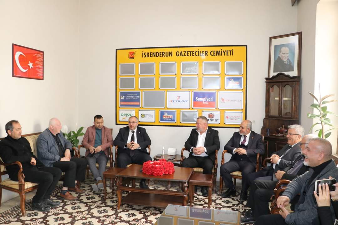 Saadet Partisi Hatay Büyükşehir Belediye Başkan Adayı Necmettin Çalışkan, İlçe Başkanı Halil İbrahim Çelik, Belediye Başkan Adayı Sabahattin Çınar ve partililerle İskenderun Gazeteciler Cemiyeti’ni ziyaret etti.