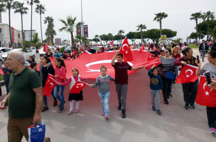 Büyük Bayrak Yürüyüşü ile ilgili bir açıklama yapan Sarı Zeybekler Derneği Genel Başkanı Nevzat Kurt İskenderun halkının bayrak yürüyüşüne karşı duyarlılığından dolayı oldukça memnun olduklarını ifade ederek şunları söyledi: “Son günlerde yaşanan terör olaylarında hayatlarını kaybeden şehitlerimizi anmak ve halen savaşmakta olan Mehmetçiklerimize destek olmak adına düzenlediğimiz ‘Şehitlere Saygı ve Mehmetçik’e Destek Büyük Bayrak Yürüyüşü” etkinliğimize geniş bir katılımın olması bizleri oldukça mutlu etti.