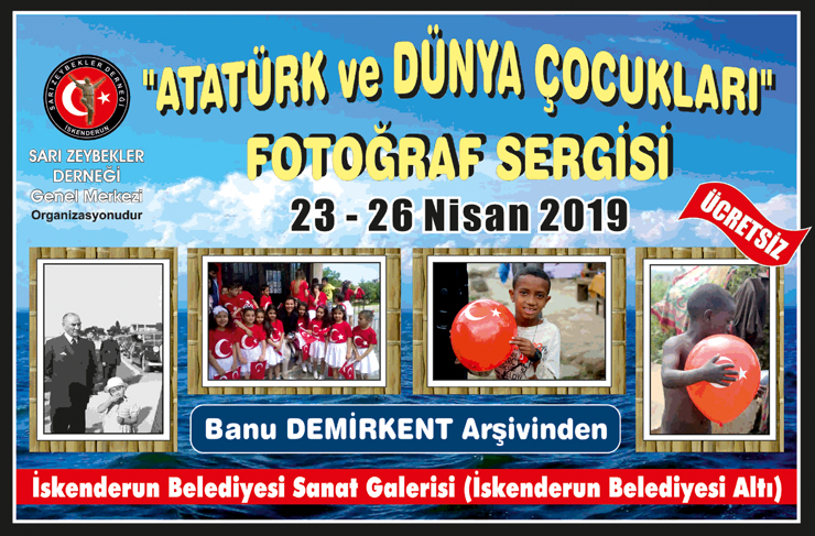 Sarı Zeybekler Derneği, 23 Nisan Ulusal Egemenlik ve Çocuk Bayramı kutlamaları çerçevesinde İskenderun Belediyesi Sanat Galerisinde Atatürk fotoğrafları sergisi açacak.