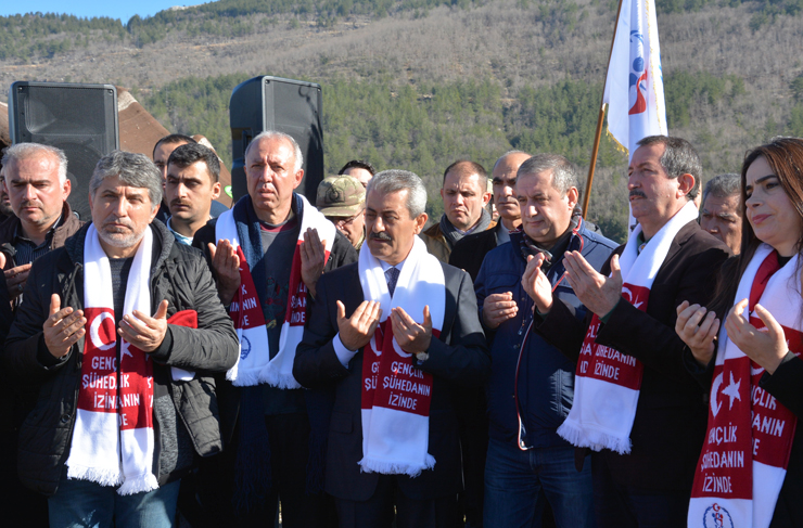 Bu vatan için toprağa düşen şehidimizin kanının her damlası paha biçilemez bir değer taşıyor. Mehmedimiz, Çanakkale’de, Yemen’de, Galiçya’da, Kutül Amare’de ve vatan toprağını kutsal saydığımız her cephede, sırtını düşman kurşununa hiçbir zaman dönmemiş ve al kanıyla kahramanlık destanları yazmıştır” şeklinde konuştu.