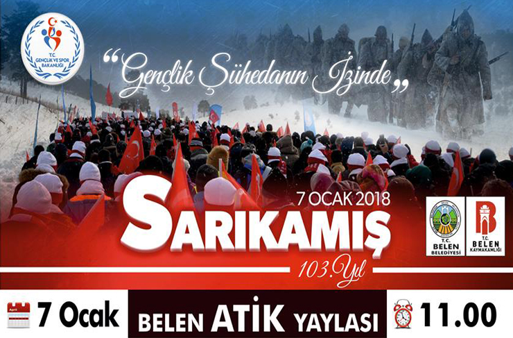 “Yürüyüşümüz, Belen Atik Yaylası 1 km Radar Yol ayrımında ‘Gençlik Şühedanın İzinde’ sloganı ile başlayacaktır. Bizler bu Pazar yapacağımız anma yürüyüşünde, sadece Sarıkamış’da Şehit olan kahraman Mehmetçiklerimizi değil, Çanakkale’de, Yemen’de, vatan toprağını kutsal saydığımız her cephede, sırtını düşman kurşununa hiçbir zaman dönmeyen kahramanlarımızı anacağız.