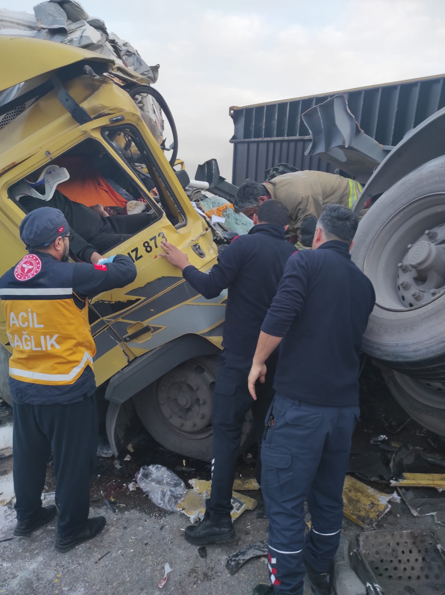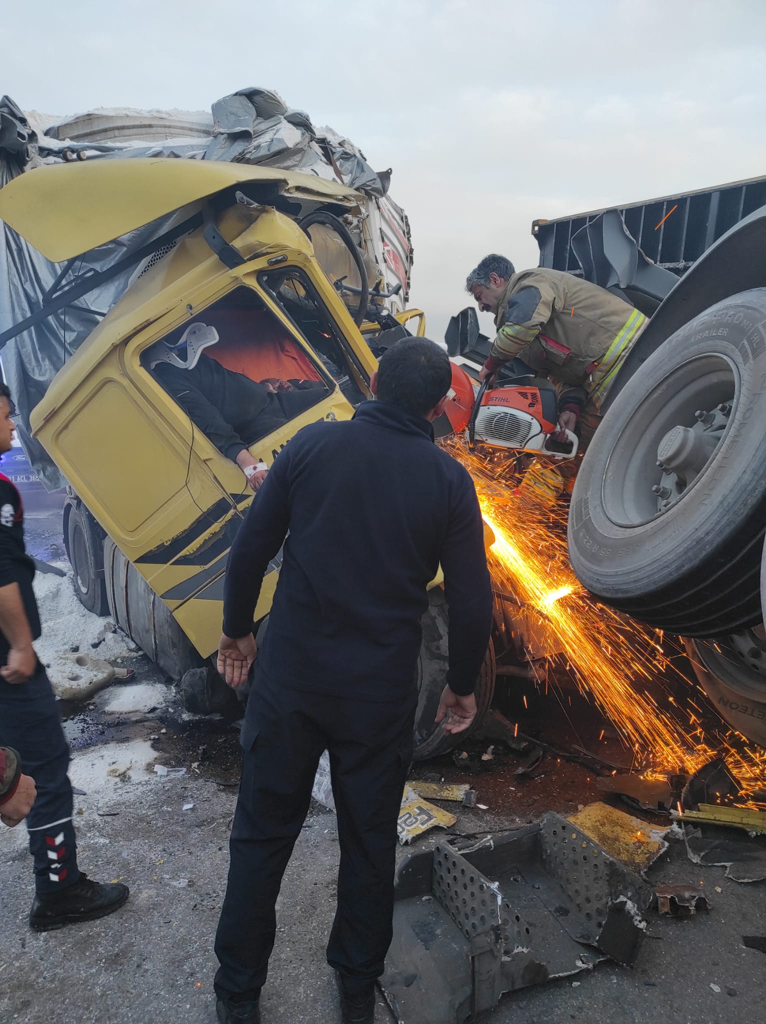 Edinilen bilgilere göre, seyir halindeki bir tır, dönüş yapmak isteyen başka bir tıra çarptı. Çarpışmanın etkisiyle araçlarda bulunan 3 kişi yaralandı. Kazayı gören vatandaşların ihbarı üzerine olay yerine itfaiye ve sağlık ekipleri sevk edildi.