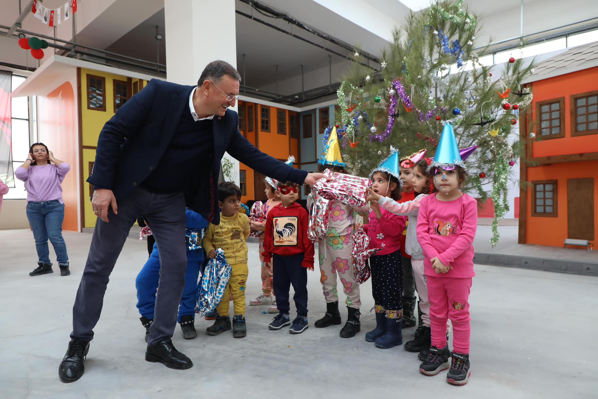 Antakya’da eğitim-öğretim gören depremzede minik öğrenciler, Hatay Büyükşehir Belediyesi tarafından hazırlanan yılbaşı eğlence programında doyasıya eğlendi.