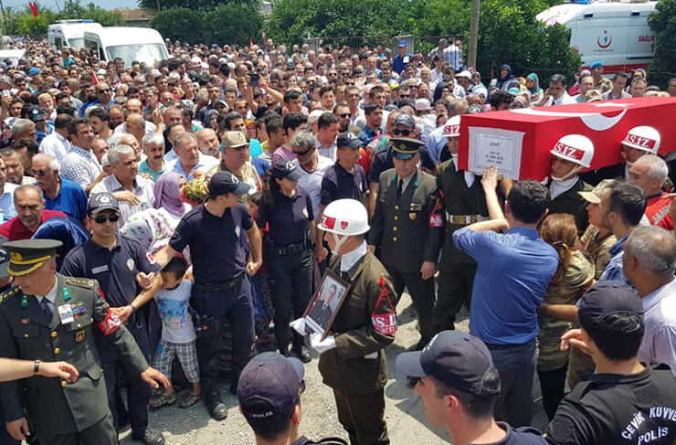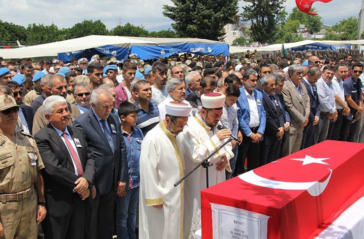 Şırnak’ın Güçlükonak ilçesinde PKK’lı teröristlerce yola tuzaklanan el yapımı patlayıcının infilak etmesiyle şehit olan İstihkam Uzman Çavuş İzzet Ak (28) memleketi Dörtyol’da son yolculuğuna uğurlandı.