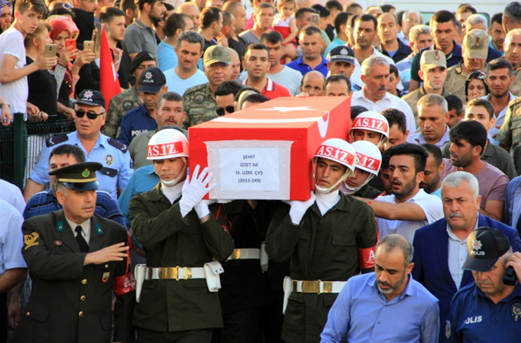 Şırnak’ın Güçlükonak ilçesinde PKK’lı teröristlerce yola tuzaklanan el yapımı patlayıcının infilak etmesiyle şehit olan İstihkam Uzman Çavuş İzzet Ak (28) memleketi Dörtyol’da son yolculuğuna uğurlandı.