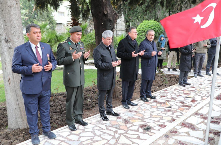 Törene katılan heyet Antakya Şehitliği’ni gezerek şehitlerin kabirlerine karanfil bıraktı. Kuran-ı Kerim’in okunması ve şehitlerimizin ruhuna dualar edilmesinin ardından tören sona erdi.