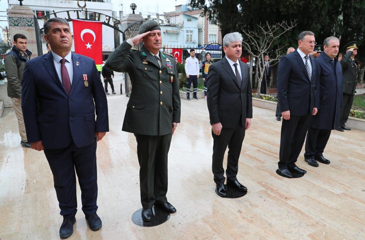 Hatay Valiliği tarafından Antakya Şehitliği’nde düzenlenen 18 Mart Çanakkale Deniz Zaferi ve Şehitleri Anma törenine Hatay Valisi Rahmi  Doğan, Hatay Büyükşehir Belediye Başkanı Doç. Dr. Lütfü Savaş, 8. Komando Tugay Komutanı Vekili Alb. Uğur Anabal, Vali Yardımcısı Aydın Tetikoğlu, İl Müftüsü Hamdi Kavillioğlu, Türkiye Harp Malulü Gaziler, Şehit Dul ve Yetimler Dernek Başkanı Hakan Kokusever ile birlikte katıldı.