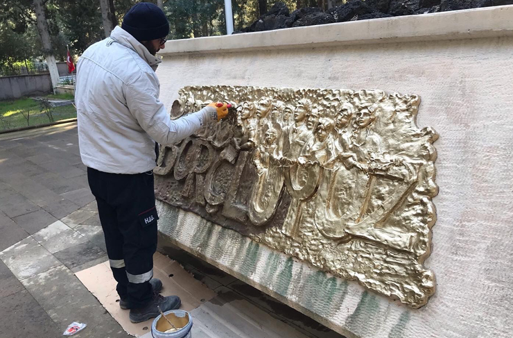 Şehitlik Anıtı üzerinde bulunan, ay-yıldız beyaza, ay-yıldızı tutan el ile aşağıdaki duvarlar krem rengine, duvar üzerinde zaferle ilgili yapılan rölyef çalışmaları da altın yaldıza boyanıyor.