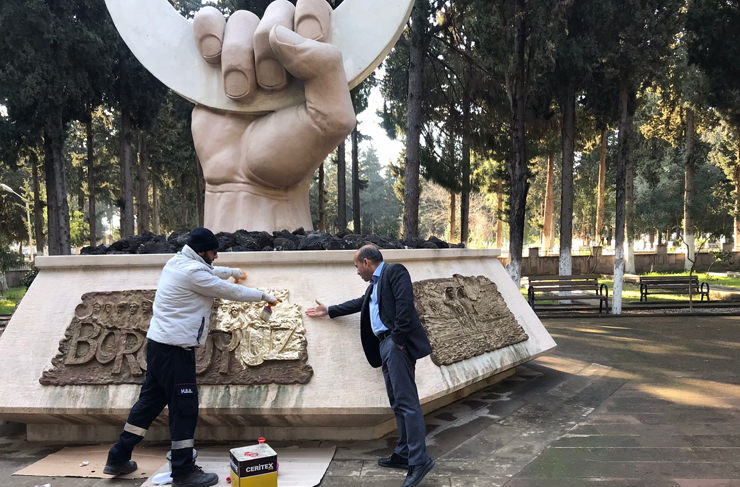 Şehitlik Anıtı üzerinde bulunan, ay-yıldız beyaza, ay-yıldızı tutan el ile aşağıdaki duvarlar krem rengine, duvar üzerinde zaferle ilgili yapılan rölyef çalışmaları da altın yaldıza boyanıyor.