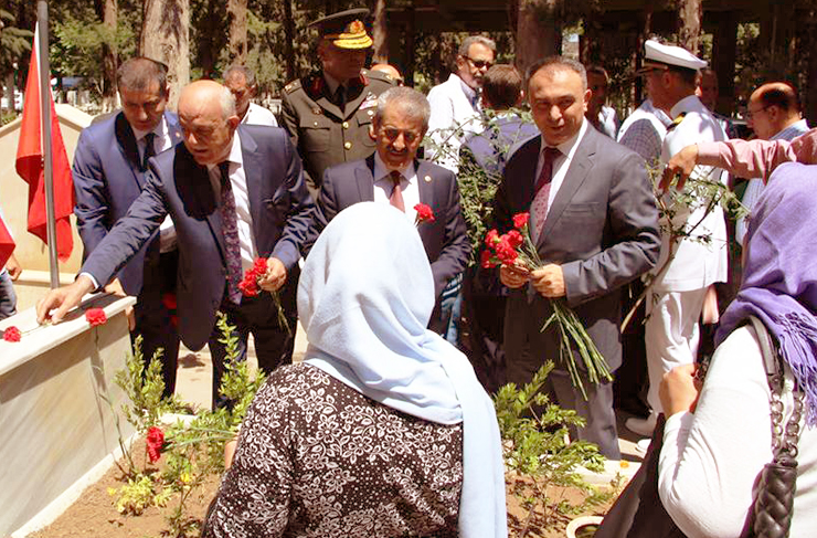 Karaağaç Asri Mezarlık’taki Şehitlik ziyaretine, TBMM İdare Amiri ve Hatay Milletvekili Orhan Karasayar, İskenderun Kaymakamı Recep Soytürk, İskenderun Belediye Başkanı Seyfi Dingil, Garnizon Komutanı Tuğgeneral Erkan Olgay, Cumhuriyet Başsavcısı Abdulkadir Akın, İskenderun Deniz Üs Komutanı Dz. Kur. Alb. Aykar Tekin, kamu kurum ve kuruluş müdürleri, daire amirleri, siyasi parti ve sivil toplum kuruluşu temsilcileri, askeri erkan, şehit aileleri ve gaziler ile çok sayıda vatandaş katıldı.