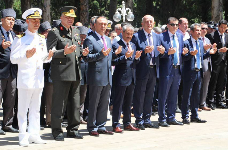 Şehitlikteki törende ilk olarak saygı duruşunda bulunularak istiklal marşı okundu ve ardından İskenderun İlçe Müftüsü Mehmet Taştan tarafından dua okundu.