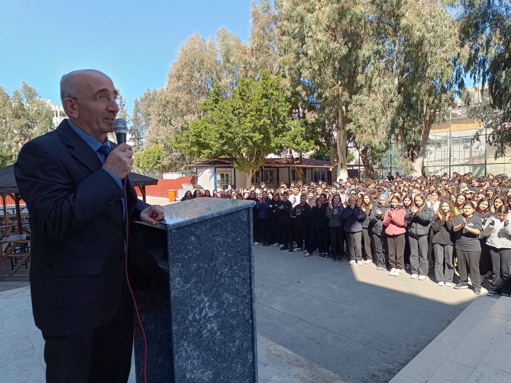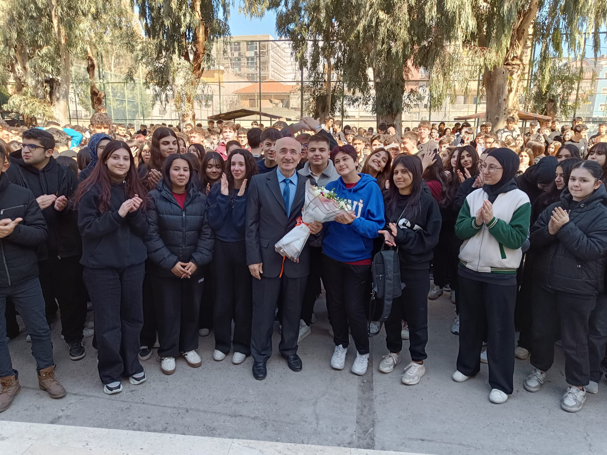 Konuşmanın ardından söz alan Sezgin Öztürk ise yıllar boyunca yaşadığı değişimi ve öğrencilerine olan sevgisini anlatarak gençlere önemli tavsiyelerde bulundu. Öztürk; “Eskiden sabahları burada yaklaşık 3 bin 500 öğrenci toplanırdı. Öğleden sonra yine 3 bin 500 öğrenci olurdu. Ve hepsi sizin gibi sessizce dinlerdi. Şimdi ise okulumuzda yaklaşık bin, bin küsur öğrencimiz var. Biz o zamanlar öğrencilerimize karşı biraz daha serttik belki ama amacımız her zaman onların hayata daha güçlü hazırlanmasıydı” dedi.
